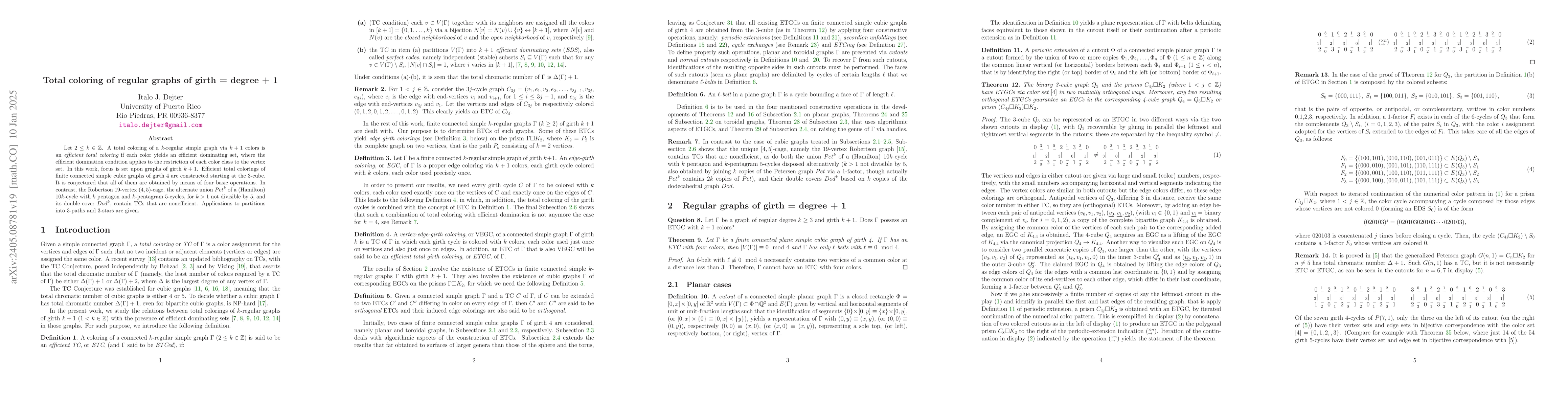 This paper investigates totally efficient colorings of regular graphs, where each color class forms an efficient dominating set or perfect code. It demonstrates a totally efficient coloring for the binary 3-cube, resulting in an edge-girth coloring for the binary 4-cube, and conjectures that no other such prism exists. It also explores related problems involving star transposition graphs and their prisms.