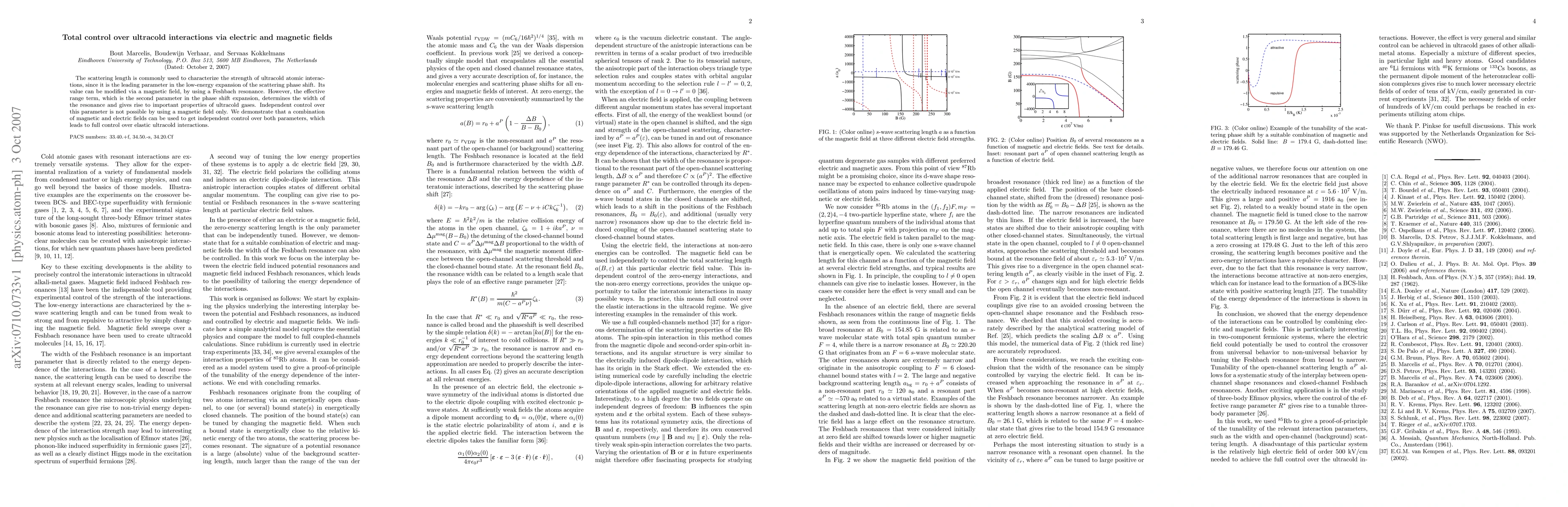 This paper demonstrates that a combination of magnetic and electric fields allows for independent control over both the scattering length and the effective range term in ultracold atomic interactions, providing full control over elastic interactions in such systems.