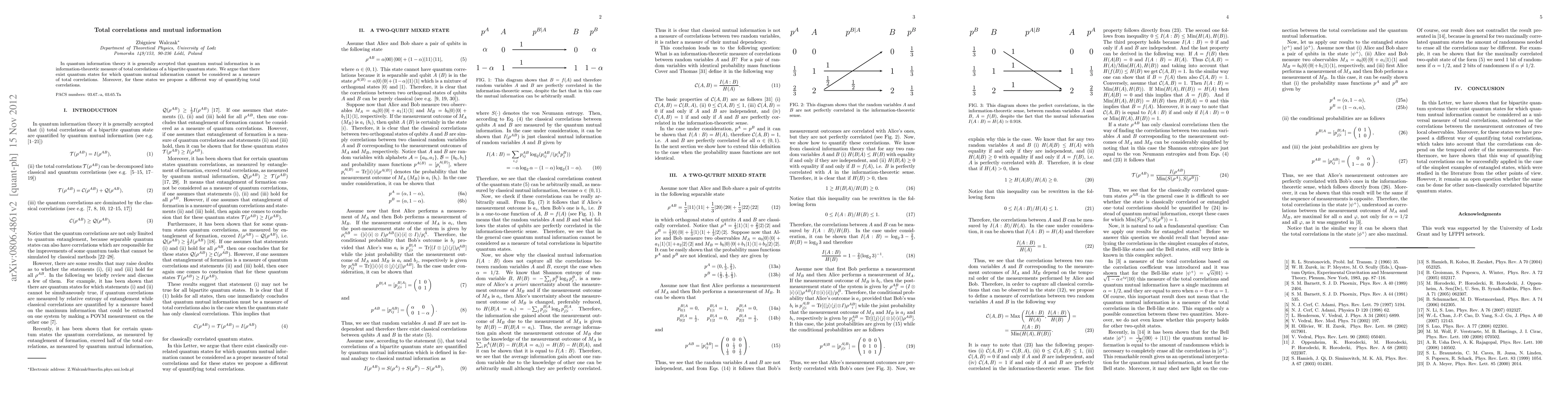 This paper argues that quantum mutual information does not fully capture total correlations in all bipartite quantum states and proposes an alternative measure for quantifying total correlations in such cases.