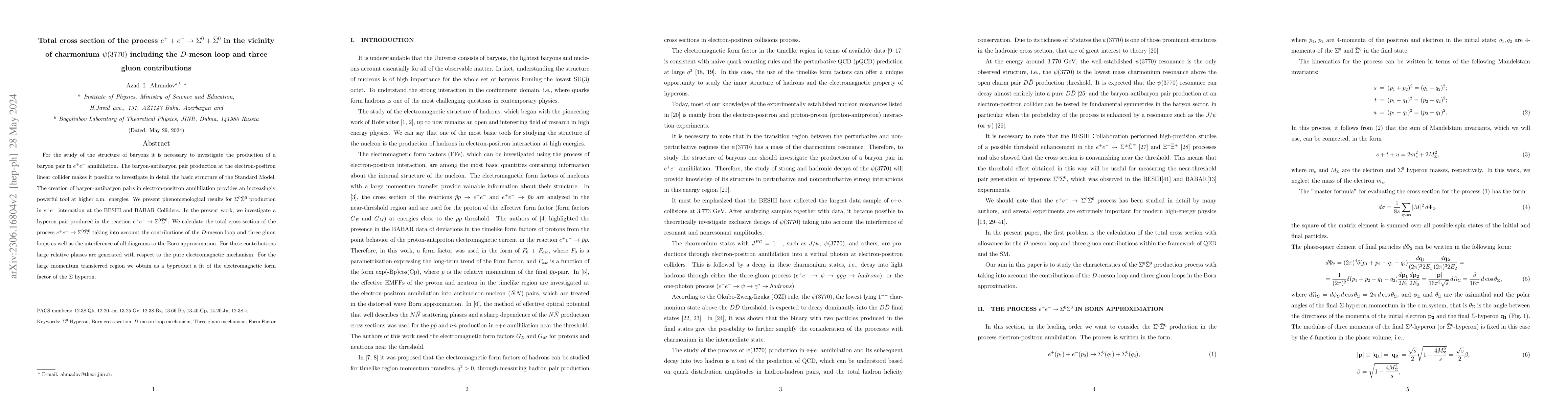 For the study of the structure of baryons it is necessary to investigate the production of a baryon pair in $e^+e^-$ annihilation. The baryon-antibaryon pair production at the electron-positron linear collider makes it possible to investigate in detail the basic structure of the Standard Model. The creation of baryon-antibaryon pairs in electron-positron annihilation provides an increasingly powerful tool at higher c.m. energies. We present phenomenological results for $\Sigma^0 \bar {\Sigma}^0$ production in $e^+e^-$ interaction at the BESIII and BABAR Colliders. In the present work, we investigate a hyperon pair produced in the reaction $e^+e^- \to \Sigma^0 \bar{\Sigma}^0$. We calculate the total cross section of the process $e^+e^- \to \Sigma^0 \bar {\Sigma}^0$ taking into account the contributions of the $D$-meson loop and three gluon loops as well as the interference of all diagrams to the Born approximation. For these contributions large relative phases are generated with respect to the pure electromagnetic mechanism. For the large momentum transferred region we obtain as a byproduct a fit of the electromagnetic form factor of the $\Sigma$ hyperon.