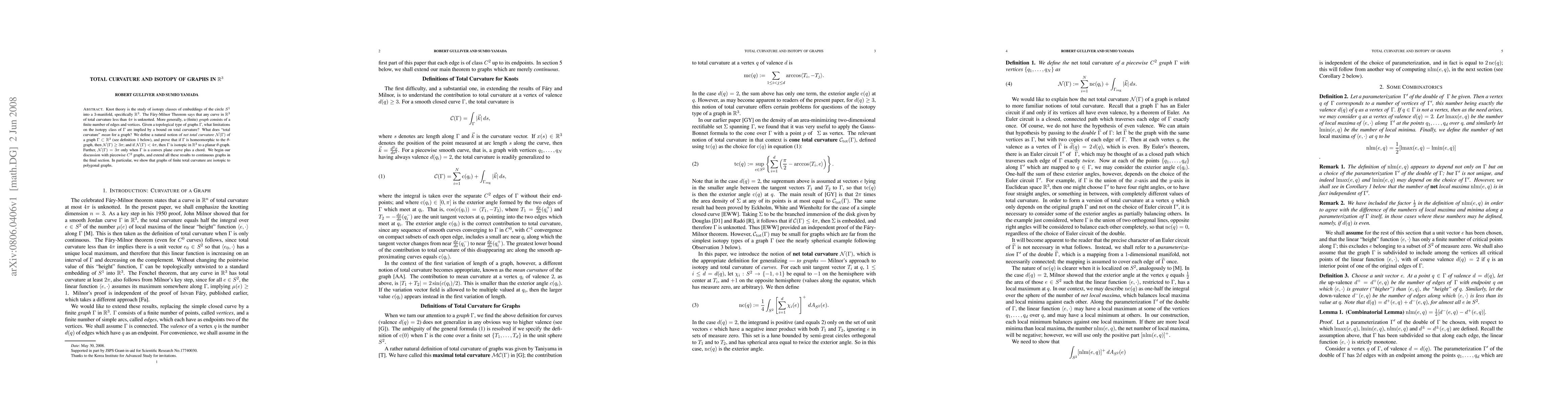 Knot theory is the study of isotopy classes of embeddings of the circle $S^1$ into a 3-manifold, specifically $R^3$. The F\'ary-Milnor Theorem says that any curve in $R^3$ of total curvature less than $4\pi$ is unknotted. More generally, a (finite) graph consists of a finite number of edges and vertices. Given a topological type of graphs $\Gamma$, what limitations on the isotopy class of $\Gamma$ are implied by a bound on total curvature? What does ``total curvature" mean for a graph? We define a natural notion of net total curvature of a graph $\Gamma$ in $R^3$, and prove that if $\Gamma$ is homeomorphic to the $\theta$-graph, then the net total curvature of $\Gamma$ \geq 3\pi$; and if it is $< 4\pi$, then $\Gamma$ is isotopic in $R^3$ to a planar $\theta$-graph. Further, the net total curvature $= 3\pi$ only when $\Gamma$ is a convex plane curve plus a chord. We begin our discussion with piecewise smooth graphs, and extend all these results to continuous graphs in the final section. In particular, we show that continuous graphs of finite total curvature are isotopic to polygonal graphs.