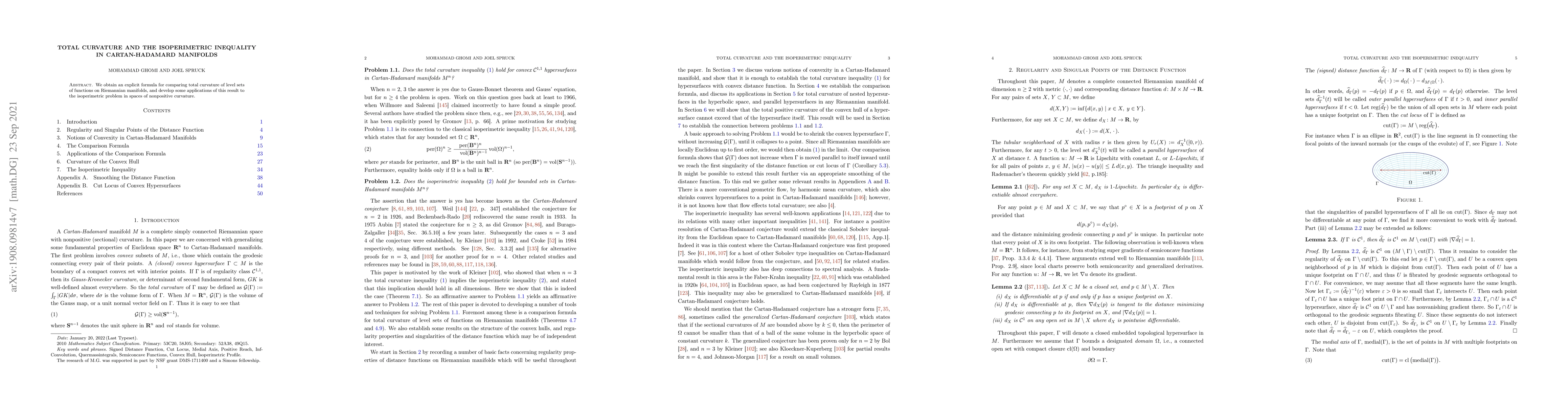Summary: This paper provides an explicit formula for comparing the total curvature of level sets on Riemannian manifolds and applies this result to enhance the understanding of the isoperimetric inequality in Cartan-Hadamard manifolds with nonpositive curvature.