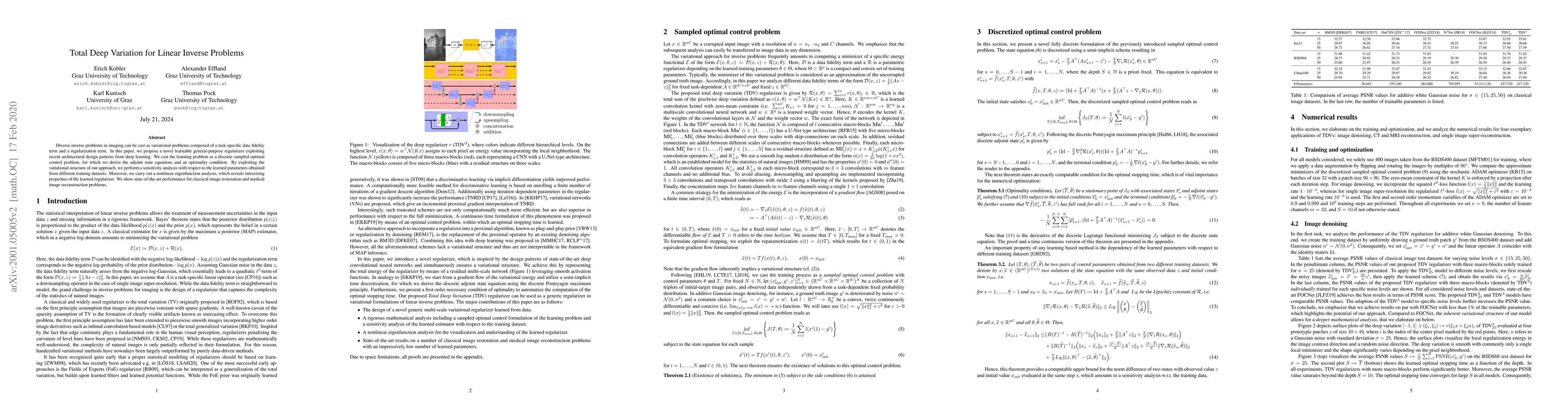 Diverse inverse problems in imaging can be cast as variational problems composed of a task-specific data fidelity term and a regularization term. In this paper, we propose a novel learnable general-purpose regularizer exploiting recent architectural design patterns from deep learning. We cast the learning problem as a discrete sampled optimal control problem, for which we derive the adjoint state equations and an optimality condition. By exploiting the variational structure of our approach, we perform a sensitivity analysis with respect to the learned parameters obtained from different training datasets. Moreover, we carry out a nonlinear eigenfunction analysis, which reveals interesting properties of the learned regularizer. We show state-of-the-art performance for classical image restoration and medical image reconstruction problems.