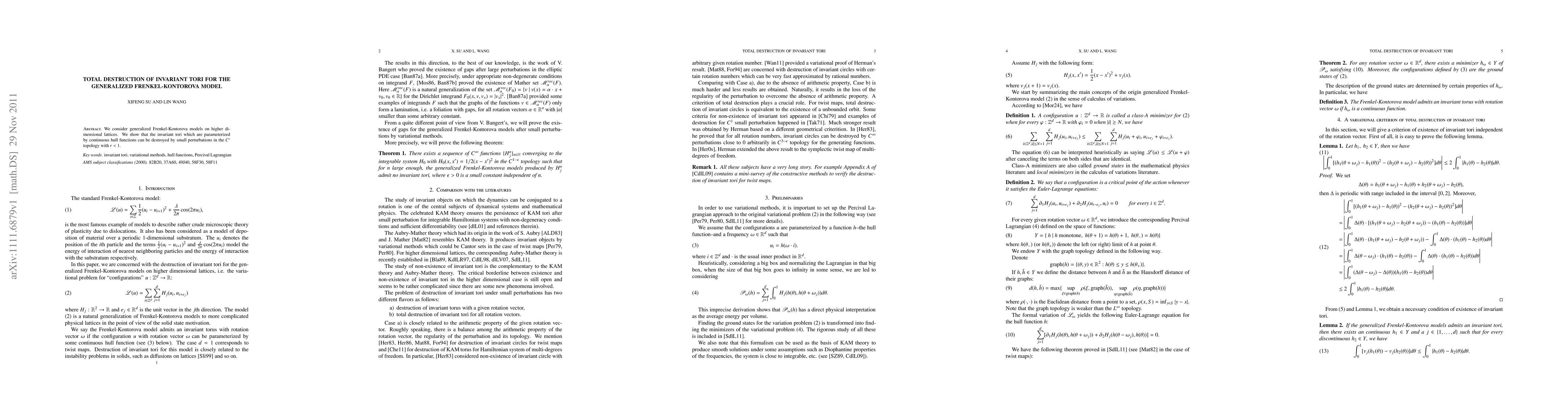 Summary: This paper investigates generalized Frenkel-Kontorova models on higher-dimensional lattices, demonstrating that invariant tori, parameterized by continuous hull functions, can be completely destroyed by small perturbations in the $C^r$ topology for $r<1$.