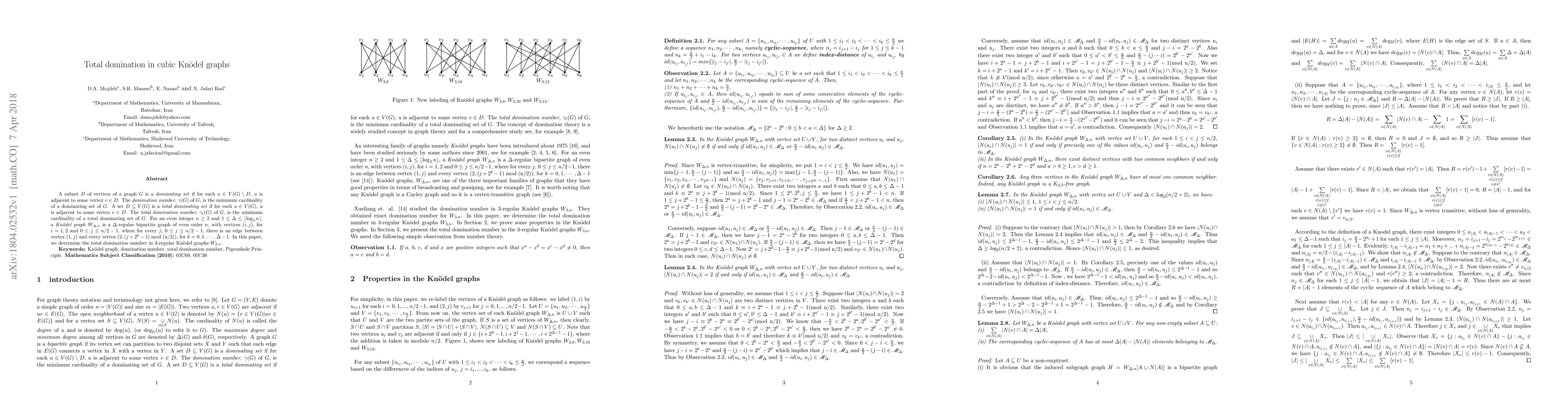 Researchers studied total domination in 3-regular Knâdel graphs and found a specific value for the total dominating number.