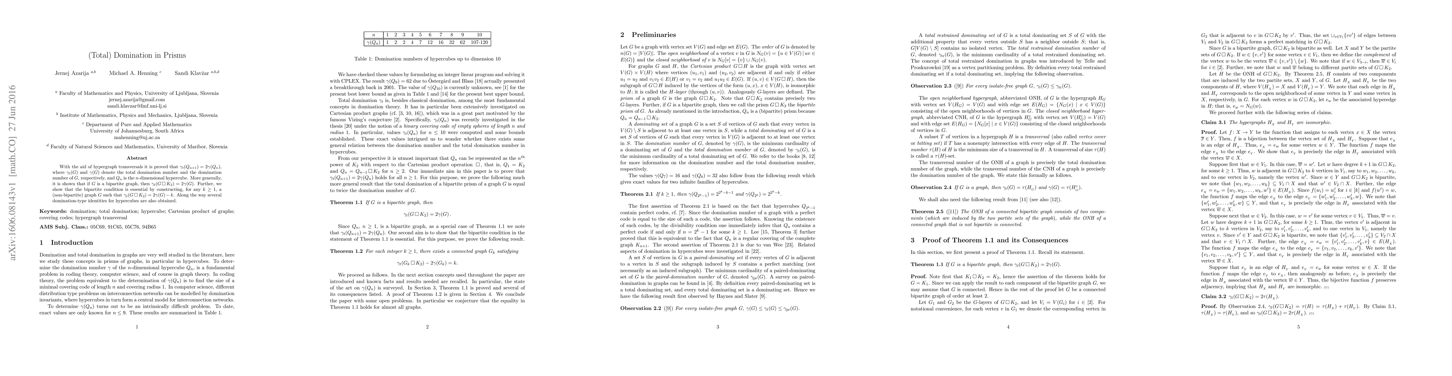 This paper proves that the total domination number $\gamma_t(Q_{n+1})$ of the $(n+1)$-dimensional hypercube is double the domination number $\gamma(Q_n)$ of the $n$-dimensional hypercube, and similarly $\gamma_t(G \square K_2) = 2\gamma(G)$ for any bipartite graph $G$. It also demonstrates the necessity of the bipartite condition by constructing non-bipartite graphs where $\gamma_t(G \square K_2)$ deviates from $2\gamma(G)$.