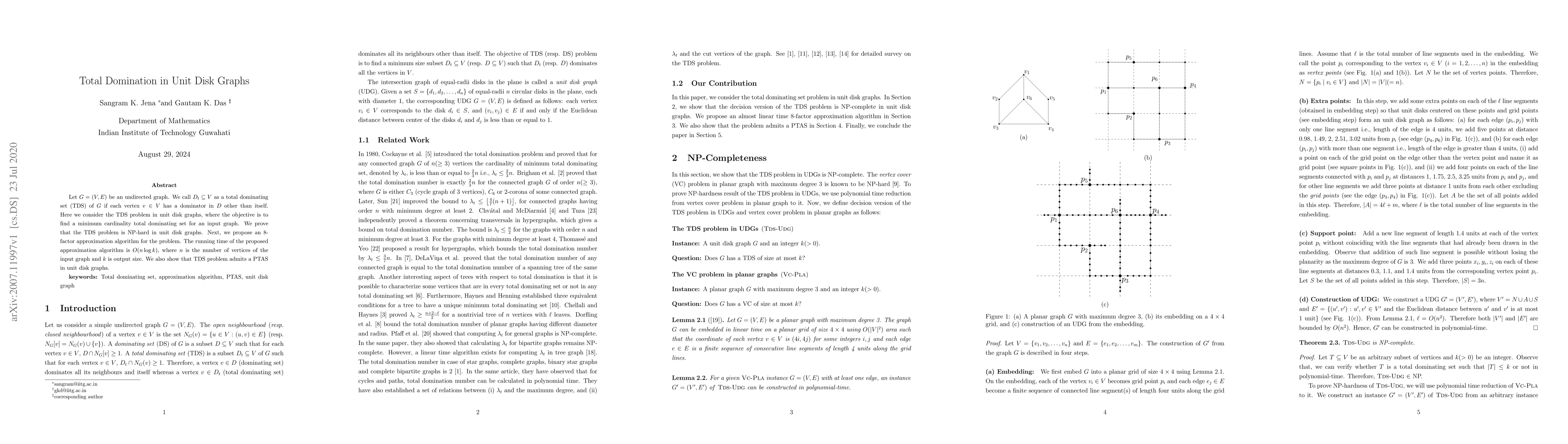 This research contributes to the field of graph theory by providing approximation algorithms and a PTAS for the TDS-UDG problem, which has applications in wireless networks, sensor deployment, and facility location.