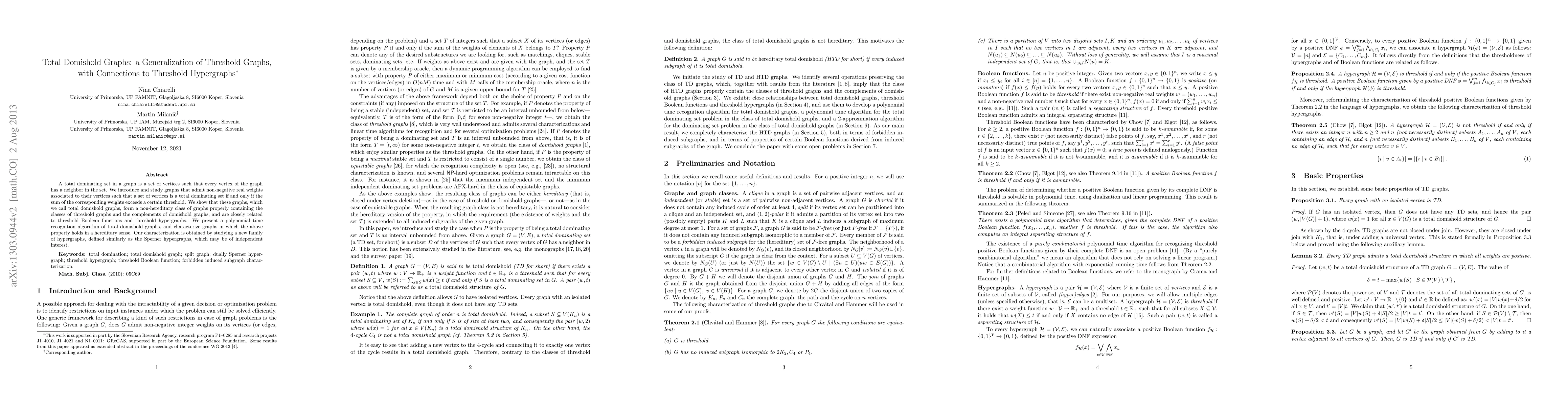 This paper introduces total domishold graphs, a generalization of threshold graphs where vertex weights determine domination through a threshold sum. It presents a polynomial recognition algorithm and characterizes hereditary properties through a new family of hypergraphs related to Sperner hypergraphs.