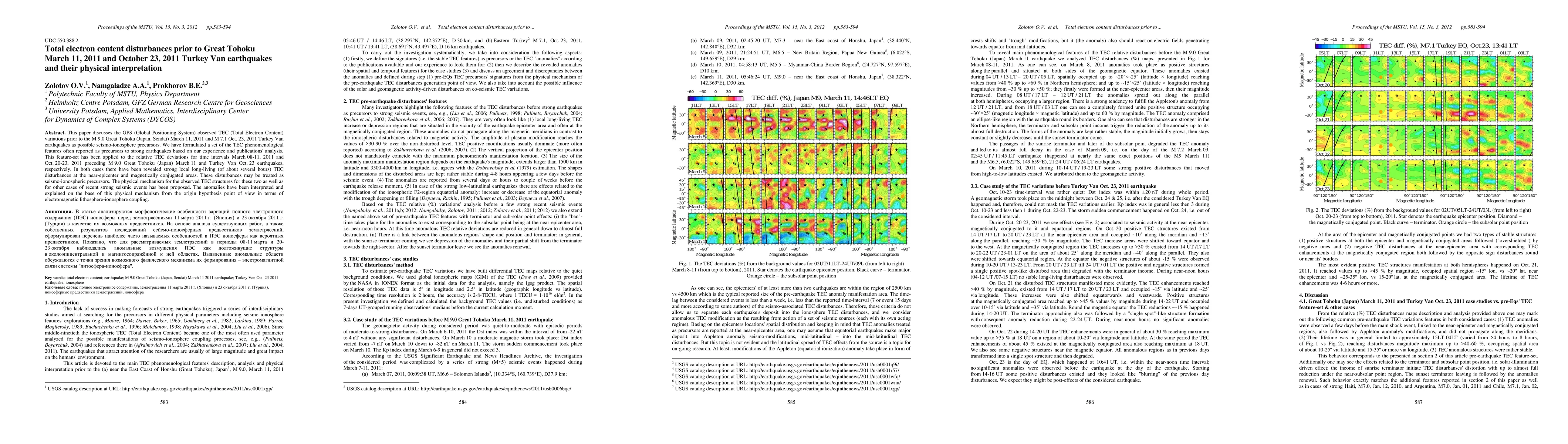 This paper investigates GPS-observed TEC variations prior to the M 9.0 Great Tohoku and M 7.1 Turkey Van earthquakes, identifying significant local TEC disturbances as potential seismo-ionospheric precursors. The study proposes a physical mechanism based on electromagnetic lithosphere-ionosphere coupling to explain these anomalies.