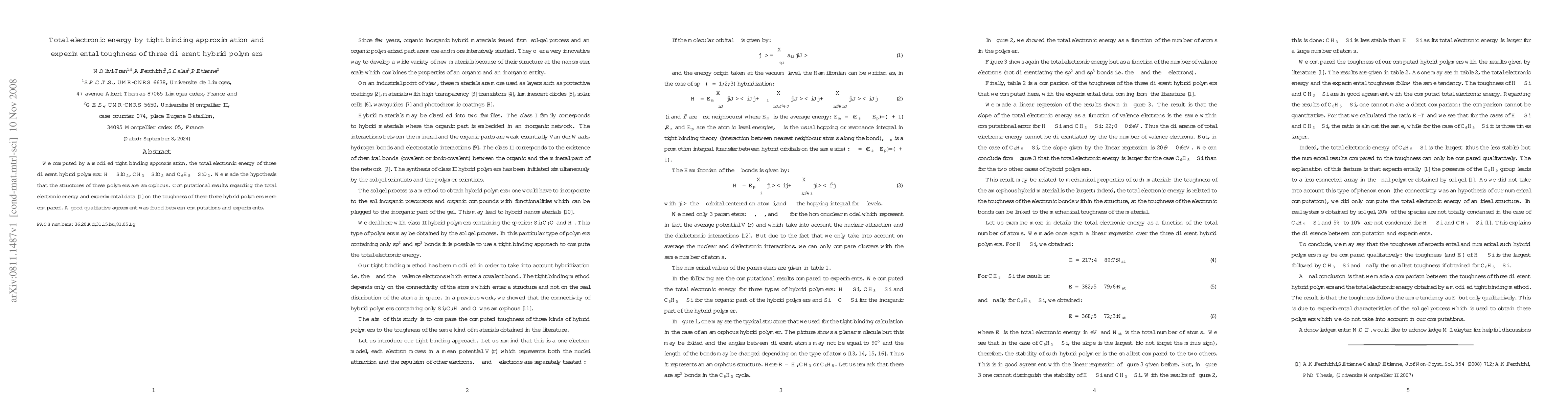 We computed by a modified tight binding approximation, the total electronic energy of three different hybrid polymers: $H-SiO_2$, $CH_3-SiO_2$ and $C_6H_5-SiO_2$. We made the hypothesis that the structures of these polymers are amorphous. Computational results regarding the total electronic energy and experimental data \cite{ferchichi} on the toughness of these three hybrid polymers were compared. A good qualitative agreement was found between computations and experiments.