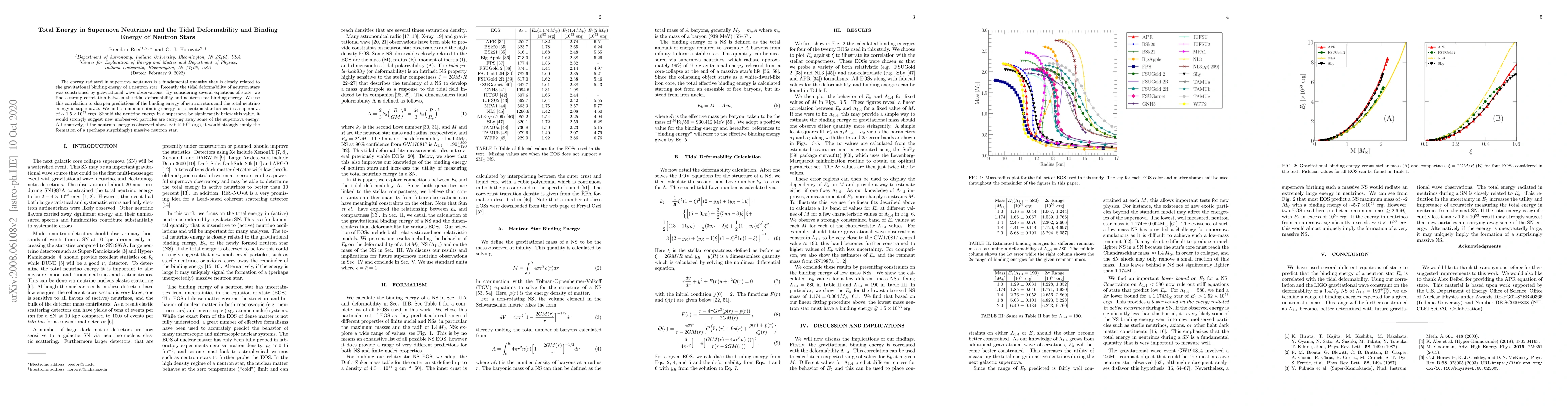 The energy radiated in supernova neutrinos is a fundamental quantity that is closely related to the gravitational binding energy of a neutron star. Recently the tidal deformability of neutron stars was constrained by gravitational wave observations. By considering several equations of state, we find a strong correlation between the tidal deformability and neutron star binding energy. We use this correlation to sharpen predictions of the binding energy of neutron stars and the total neutrino energy in supernovae. We find a minimum binding energy for a neutron star formed in a supernova of $\sim1.5\times 10^{53}$ ergs. Should the neutrino energy in a supernova be significantly below this value, it would strongly suggest new unobserved particles are carrying away some of the supernova energy. Alternatively, if the neutrino energy is observed above $\sim 6\times 10^{53}$ ergs, it would strongly imply the formation of a (perhaps surprisingly) massive neutron star.