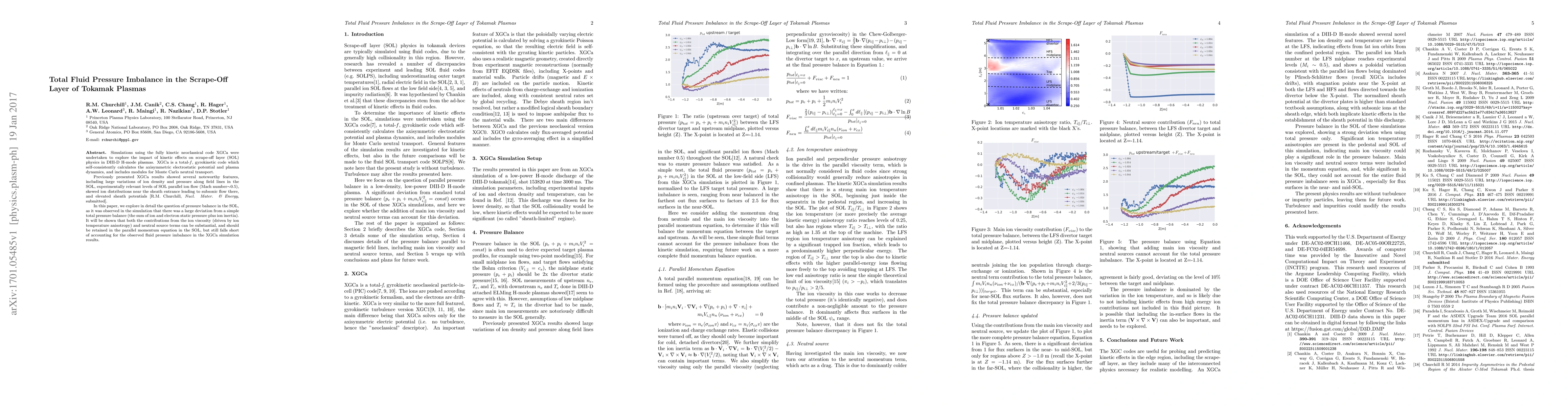 Simulations using the fully kinetic neoclassical code XGCa were undertaken to explore the impact of kinetic effects on scrape-off layer (SOL) physics in DIII-D H-mode plasmas. XGCa is a total-f, gyrokinetic code which self-consistently calculates the axisymmetric electrostatic potential and plasma dynamics, and includes modules for Monte Carlo neutral transport. Previously presented XGCa results showed several noteworthy features, including large variations of ion density and pressure along field lines in the SOL, experimentally relevant levels of SOL parallel ion flow (Mach number~0.5), skewed ion distributions near the sheath entrance leading to subsonic flow there, and elevated sheath potentials [R.M. Churchill, Nucl. Mater. & Energy, submitted]. In this paper, we explore in detail the question of pressure balance in the SOL, as it was observed in the simulation that there was a large deviation from a simple total pressure balance (the sum of ion and electron static pressure plus ion inertia). It will be shown that both the contributions from the ion viscosity (driven by ion temperature anisotropy) and neutral source terms can be substantial, and should be retained in the parallel momentum equation in the SOL, but still falls short of accounting for the observed fluid pressure imbalance in the XGCa simulation results.