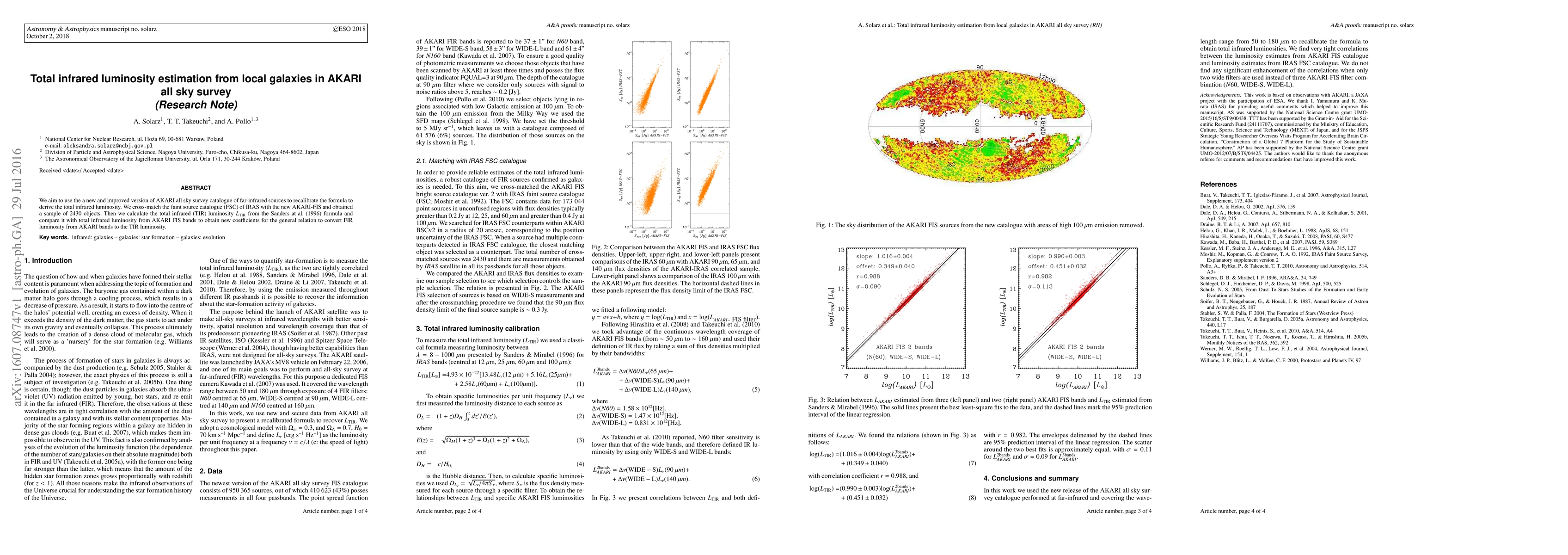 This paper recalibrates the formula to derive total infrared luminosity using the AKARI all sky survey catalogue, cross-matching it with the IRAS faint source catalogue. New coefficients are obtained to convert far-infrared luminosity from AKARI bands to total infrared luminosity.