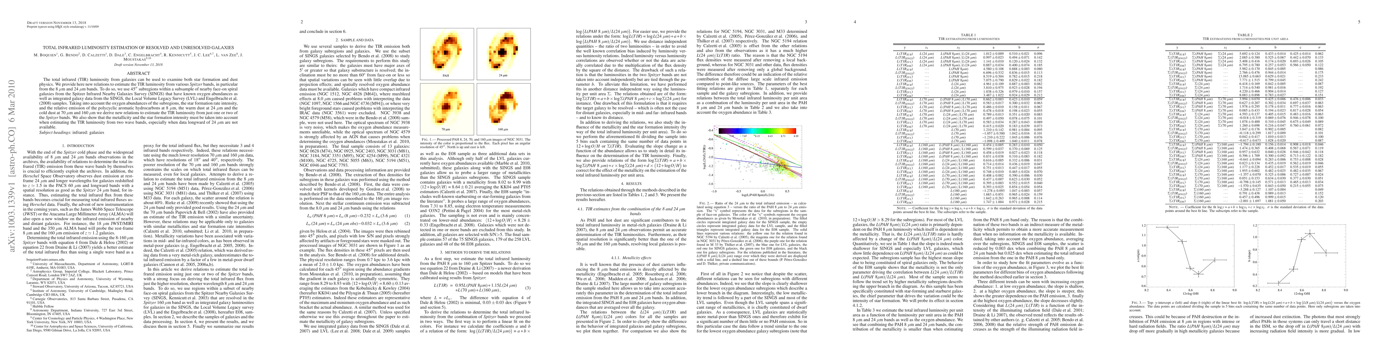 The total infrared (TIR) luminosity from galaxies can be used to examine both star formation and dust physics. We provide here new relations to estimate the TIR luminosity from various Spitzer bands, in particular from the 8 micron and 24 micron bands. To do so, we use 45" subregions within a subsample of nearby face-on spiral galaxies from the Spitzer Infrared Nearby Galaxies Survey (SINGS) that have known oxygen abundances as well as integrated galaxy data from the SINGS, the Local Volume Legacy Survey (LVL) and Engelbracht et al. (2008) samples. Taking into account the oxygen abundances of the subregions, the star formation rate intensity, and the relative emission of the polycyclic aromatic hydrocarbons at 8 micron, the warm dust at 24 micron and the cold dust at 70 micron and 160 micron we derive new relations to estimate the TIR luminosity from just one or two of the Spitzer bands. We also show that the metallicity and the star formation intensity must be taken into account when estimating the TIR luminosity from two wave bands, especially when data longward of 24 micron are not available.