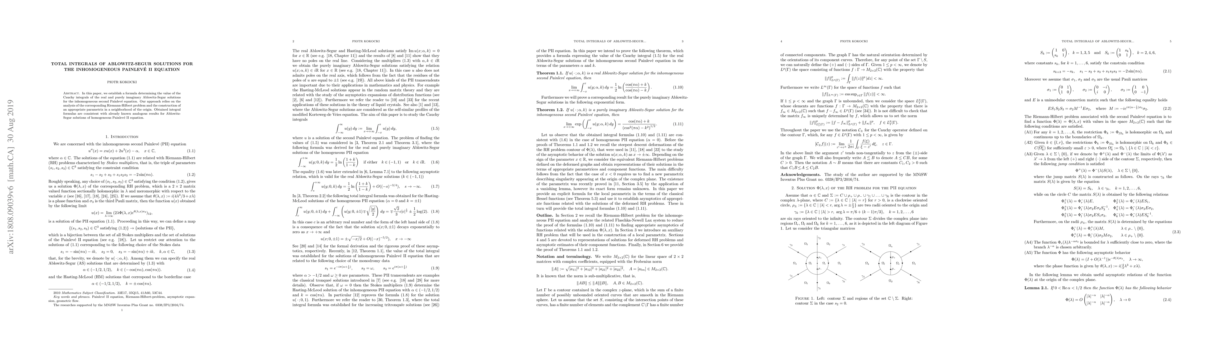 The paper presents a detailed analysis of the Riemann-Hilbert problem associated with the inhomogeneous Painlevé II equation and provides explicit integral formulas for Ablowitz-Segur solutions.