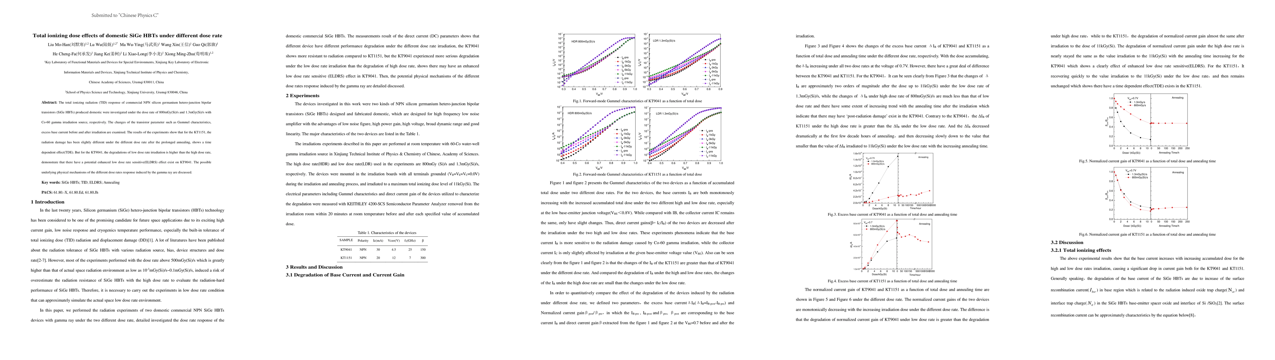 This study investigates the total ionizing dose effects on domestic SiGe HBTs under different dose rates using Co-60 gamma irradiation. Results show that KT1151 exhibits slight differences in radiation damage under varying dose rates, while KT9041 demonstrates significantly higher degradation under low dose rates, suggesting an enhanced low dose rate sensitive (ELDRS) effect.