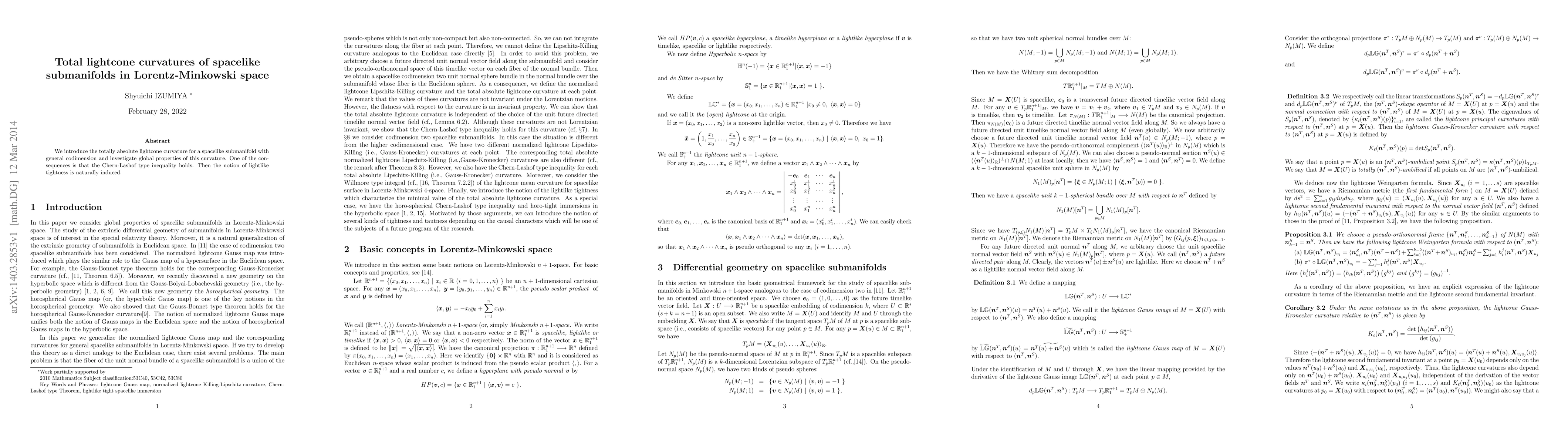 We introduce the totally absolute lightcone curvature for a spacelike submanifold with general codimension and investigate global properties of this curvature. One of the consequences is that the Chern-Lashof type inequality holds. Then the notion of lightlike tightness is naturally induced.