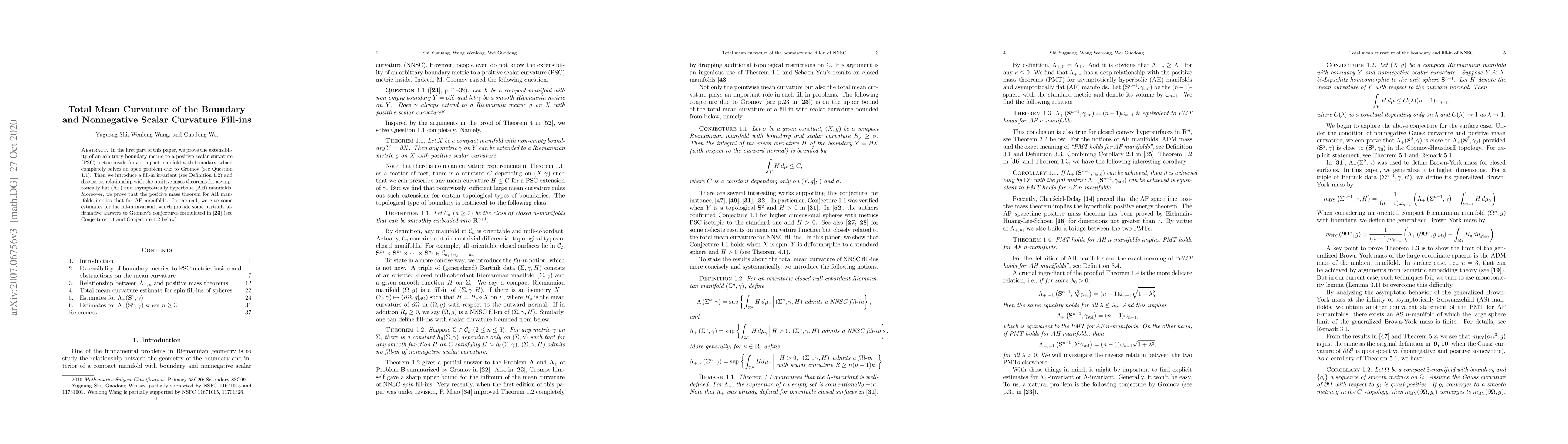 Researchers extend a boundary metric to a positive scalar curvature inside a compact manifold with boundary, resolving an open problem, and introduce a fill-in invariant related to the positive mass theorem for asymptotically flat and hyperbolic manifolds.