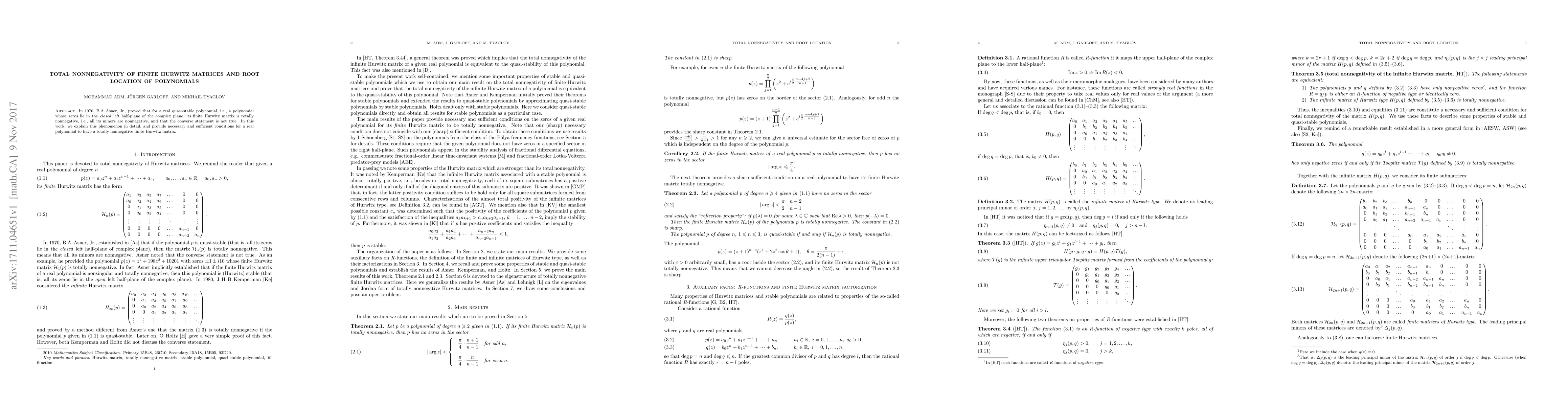 This paper elaborates on B.A. Asner, Jr.'s 1970 theorem regarding the total nonnegativity of finite Hurwitz matrices for quasi-stable polynomials and provides necessary and sufficient conditions for real polynomials to possess such matrices.