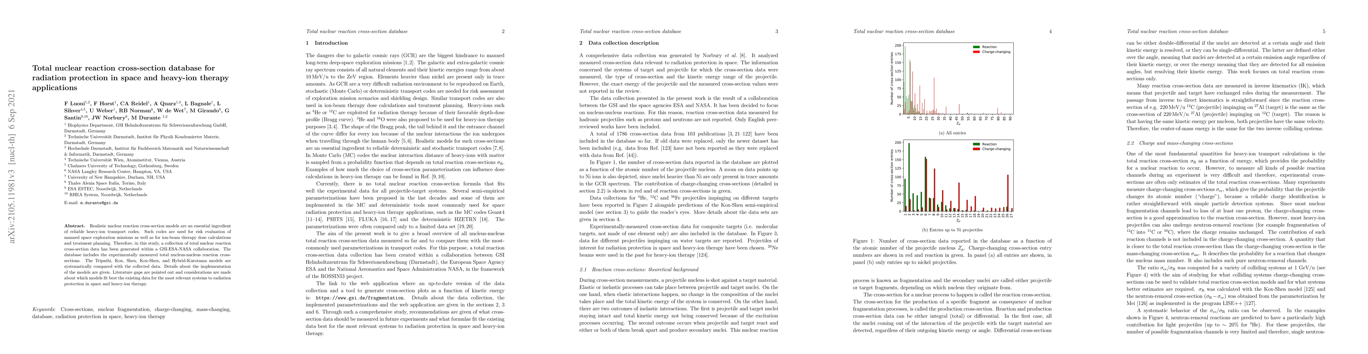 This study compiles a comprehensive database of total nuclear reaction cross-sections for radiation protection in space and heavy-ion therapy, generated through a GSI-ESA-NASA collaboration. It evaluates various models against the collected data to identify the best fit for reliable heavy-ion transport codes used in space exploration risk assessment and ion-beam therapy.