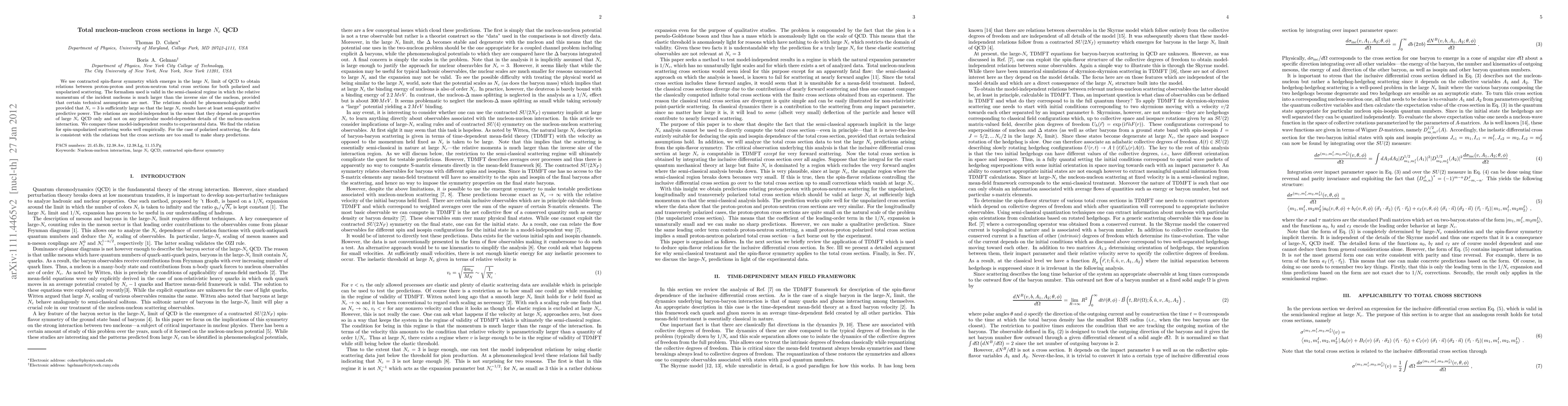 Researchers derived model-independent relations between proton-proton and neutron-proton total cross sections in QCD using large Nc symmetry, with semi-classical results that match empirical data for spin-unpolarized scattering but fall short for polarized scattering.