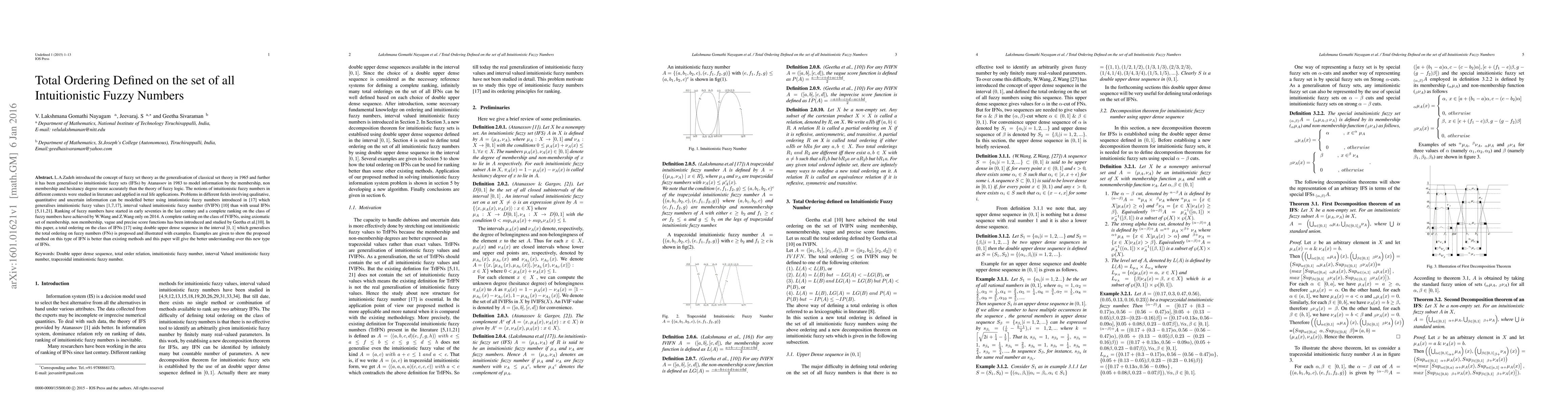 A new total ordering method is proposed for intuitionistic fuzzy numbers using a double upper dense sequence in the interval [0; 1], offering a more accurate way of ranking these numbers compared to existing methods.