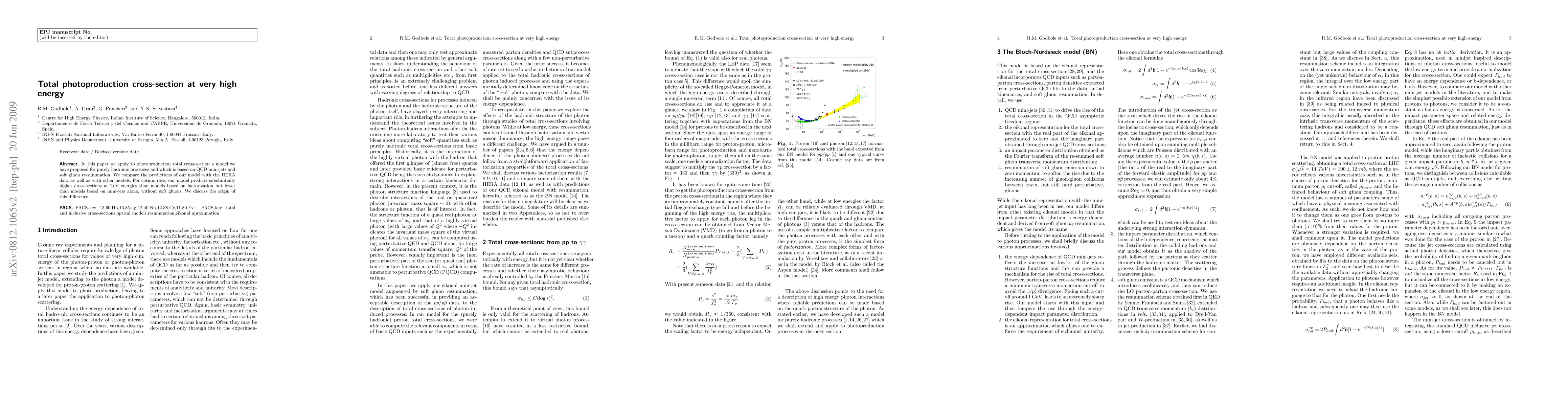 This paper proposes a new model for the total photoproduction cross-section at very high energy, based on QCD mini-jets and soft gluon re-summation, and compares its predictions with HERA data and other models, finding higher cross-sections for cosmic rays at TeV energies compared to factorization-based models but lower than mini-jets-only models.