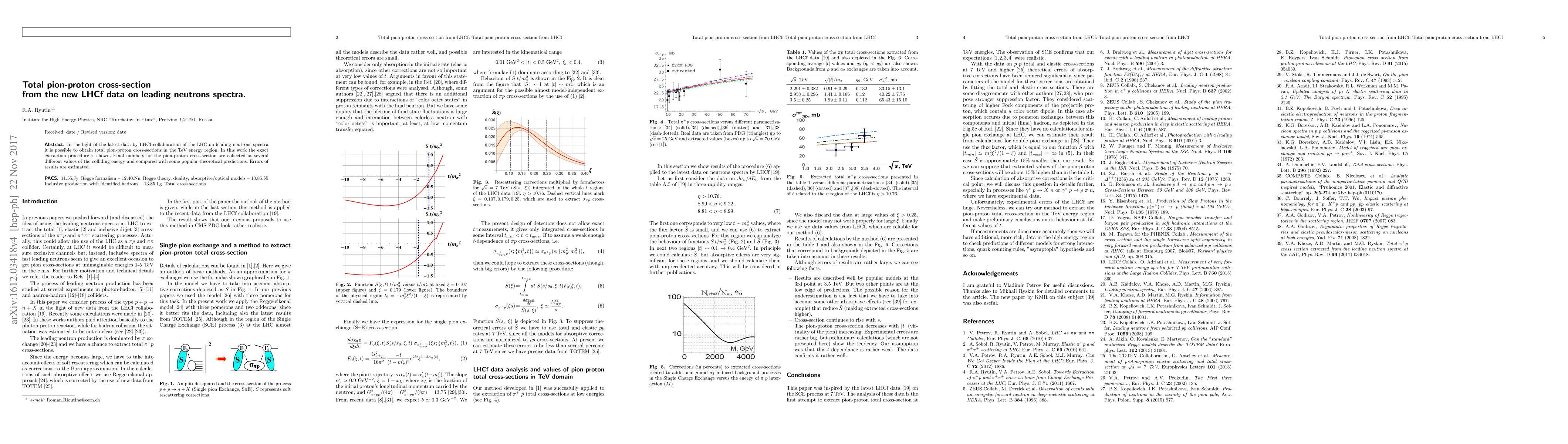 In the light of the latest data by LHCf collaboration of the LHC on leading neutrons spectra it is possible to obtain total pion-proton cross-sections in the TeV energy region. In this work the exact extraction procedure is shown. Final numbers for the pion-proton cross-section are collected at several different values of the colliding energy and compared with some popular theoretical predictions. Errors of results are estimated.