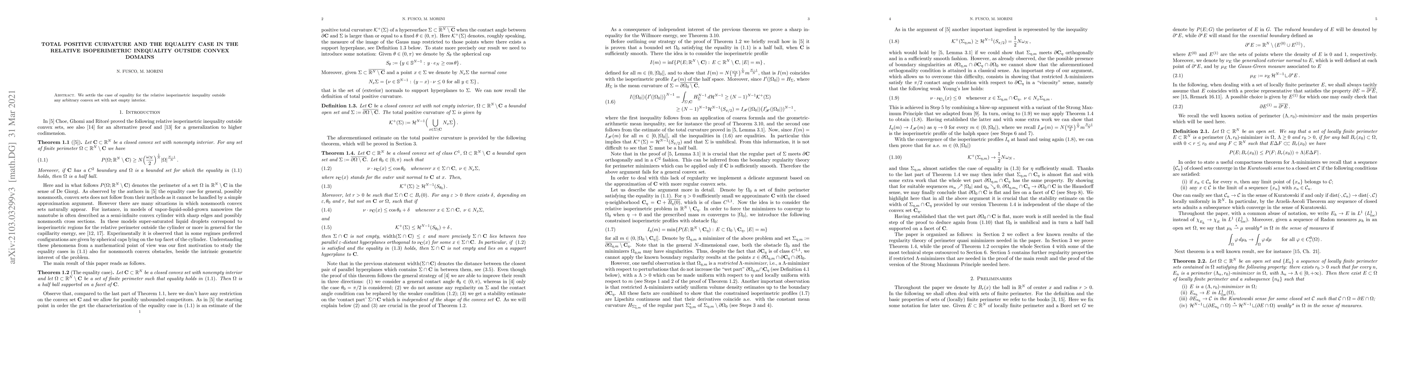 Summary: This paper resolves the equality case for the relative isoperimetric inequality in regions outside any convex set with a non-empty interior, establishing total positive curvature as the necessary condition.