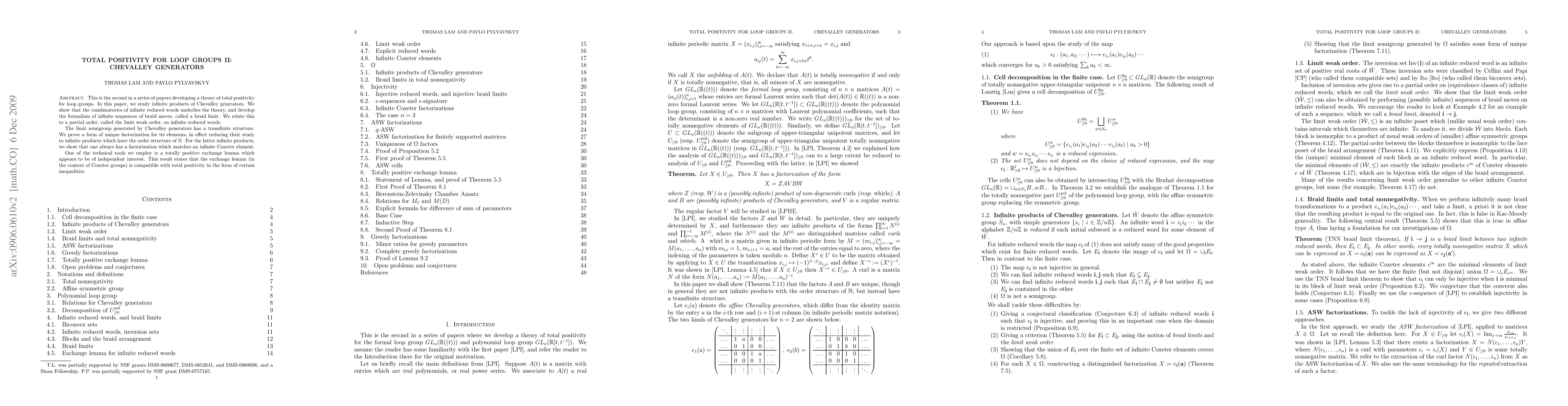 This is the second in a series of papers developing a theory of total positivity for loop groups. In this paper, we study infinite products of Chevalley generators. We show that the combinatorics of infinite reduced words underlies the theory, and develop the formalism of infinite sequences of braid moves, called a braid limit. We relate this to a partial order, called the limit weak order, on infinite reduced words. The limit semigroup generated by Chevalley generators has a transfinite structure. We prove a form of unique factorization for its elements, in effect reducing their study to infinite products which have the order structure of the natural numbers. For the latter infinite products, we show that one always has a factorization which matches an infinite Coxeter element. One of the technical tools we employ is a totally positive exchange lemma which appears to be of independent interest. This result states that the exchange lemma (in the context of Coxeter groups) is compatible with total positivity in the form of certain inequalities.