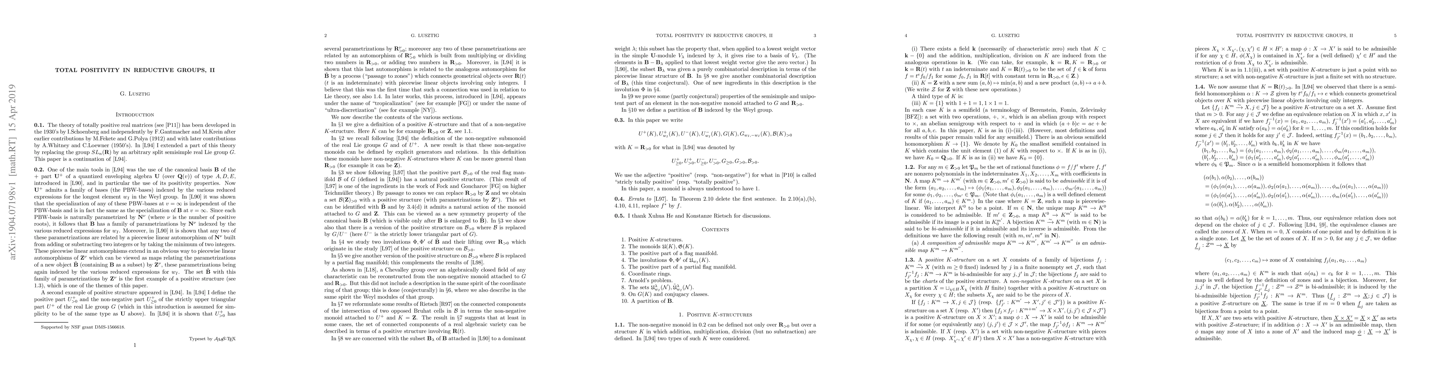 This paper builds upon previous work, delving deeper into total positivity within reductive groups, presenting new findings and methodologies in algebraic structures.