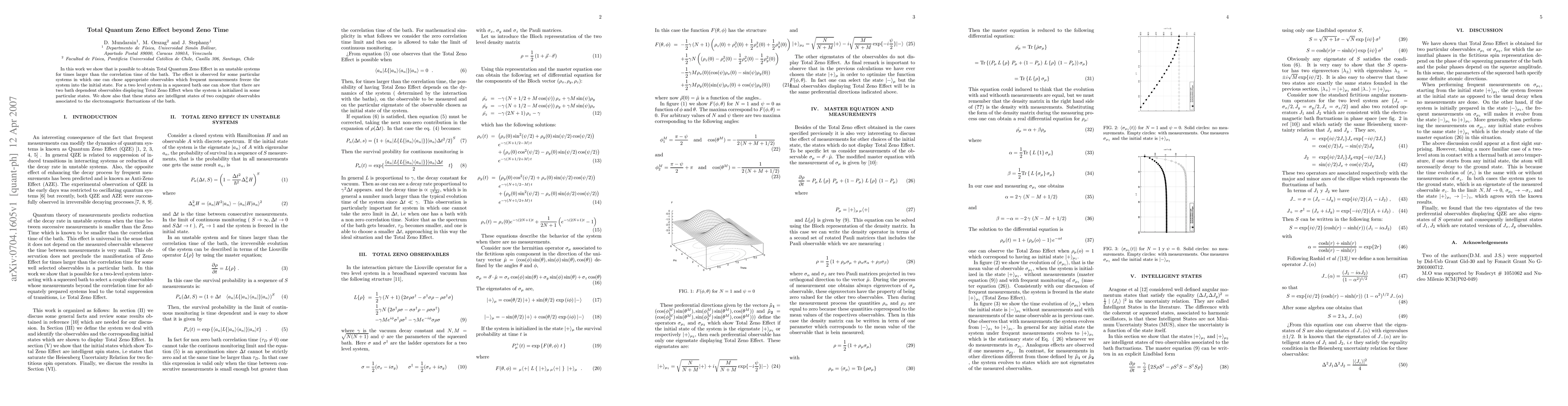This paper demonstrates the Total Quantum Zeno Effect in unstable systems for times exceeding the bath's correlation time, achieved by selecting appropriate observables that freeze the system in its initial state. It highlights two-level systems in squeezed baths where specific initial states, linked to electromagnetic fluctuations, exhibit this effect.