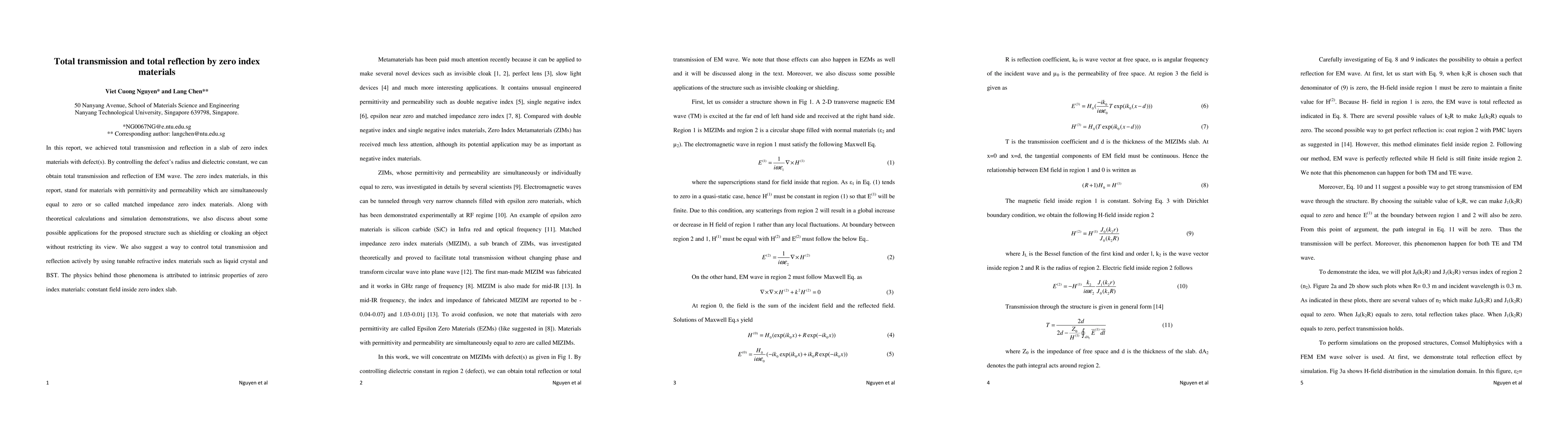 The research made a significant technical contribution by demonstrating the possibility of total transmission and total reflection in zero index materials with defects.