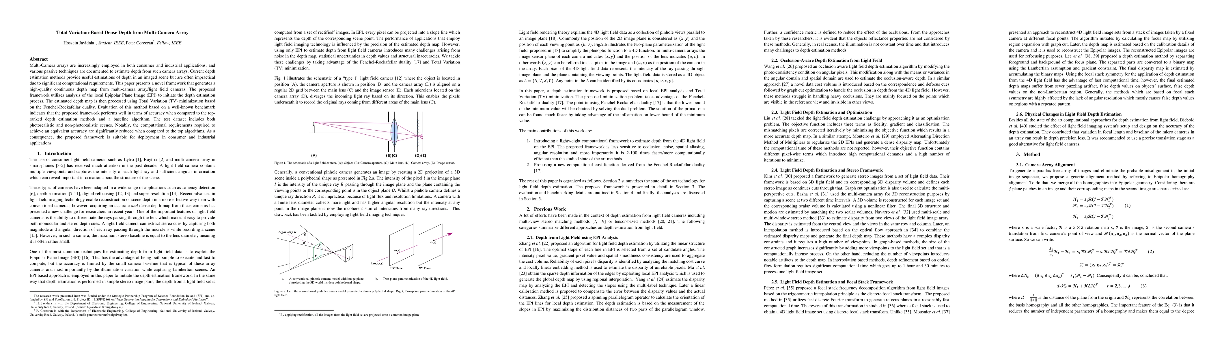 A new method for estimating depth from multi-camera arrays uses Total Variation minimization to generate high-quality continuous depth maps with significantly reduced computational requirements.