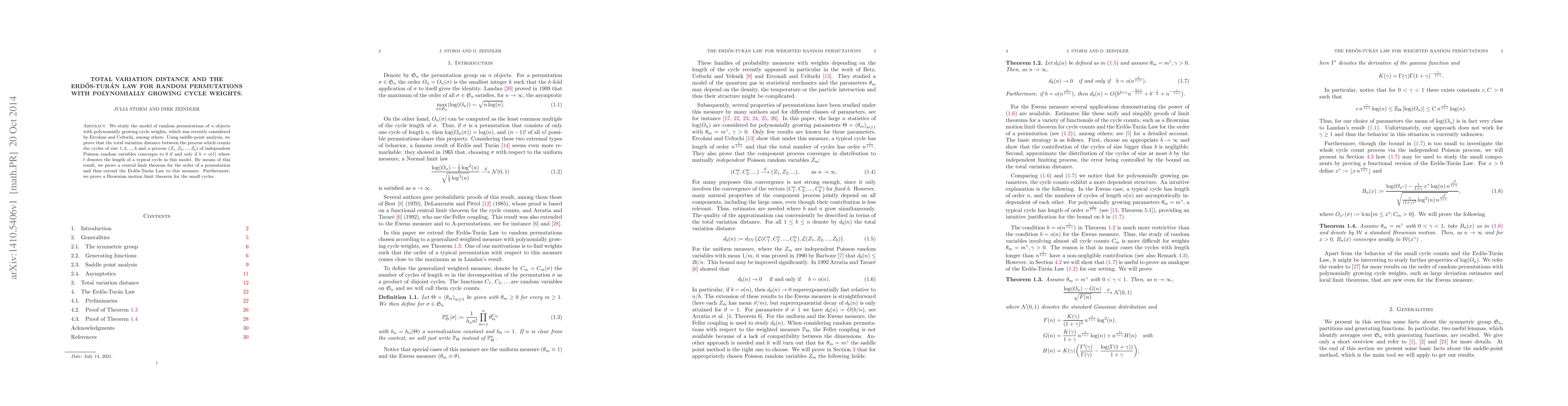 This paper explores random permutations with polynomially growing cycle weights, proving that the total variation distance between cycle counts and independent Poisson processes converges to zero if and only if the cycle size is sublinear relative to the typical cycle length. It extends the Erdős-Turán Law to this model and establishes a central limit theorem for permutation order and a Brownian motion limit for small cycles.