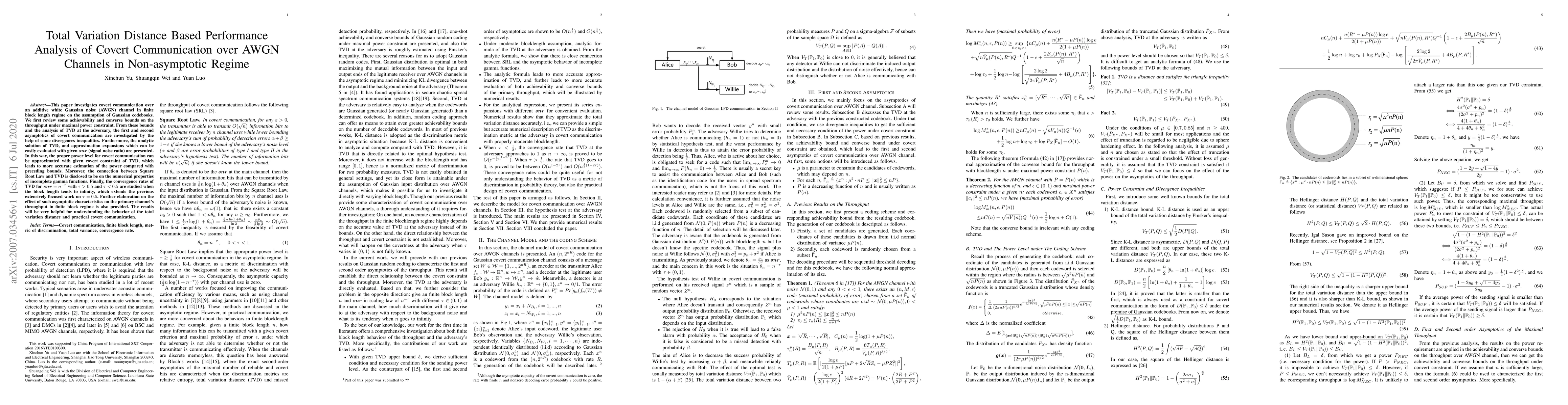 This paper investigates covert communication over an additive white Gaussian noise (AWGN) channel in finite block length regime on the assumption of Gaussian codebooks. We first review some achievability and converse bounds on the throughput under maximal power constraint. From these bounds and the analysis of TVD at the adversary, the first and second asymptotics of covert communication are investigated by the help of some divergences inequalities. Furthermore, the analytic solution of TVD, and approximation expansions which can be easily evaluated with given snr (signal noise ratio) are presented. In this way, the proper power level for covert communication can be approximated with given covert constraint of TVD, which leads to more accurate estimation of the power compared with preceding bounds. Further elaboration on the effect of such asymptotic characteristics on the primary channels's throughput in finite block regime is also provided. The results will be very helpful for understanding the behavior of the total variation distance and practical covert communication.