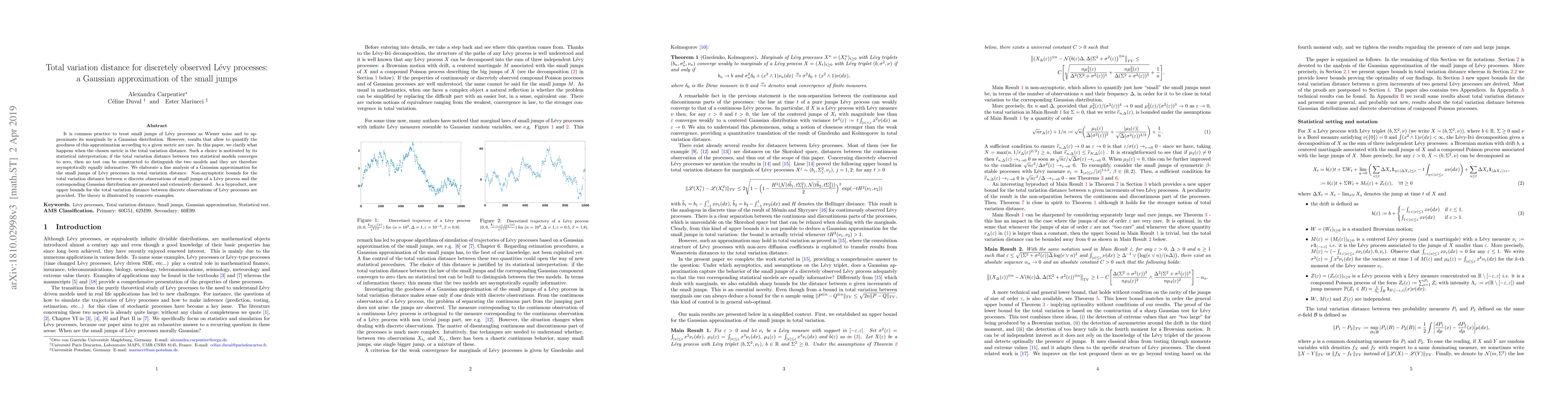 This paper investigates the total variation distance between discrete observations of small jumps in Lévy processes and their Gaussian approximations, providing non-asymptotic bounds for this distance. It also offers new upper bounds for the total variation distance between discrete observations of Lévy processes, illustrated by practical examples.