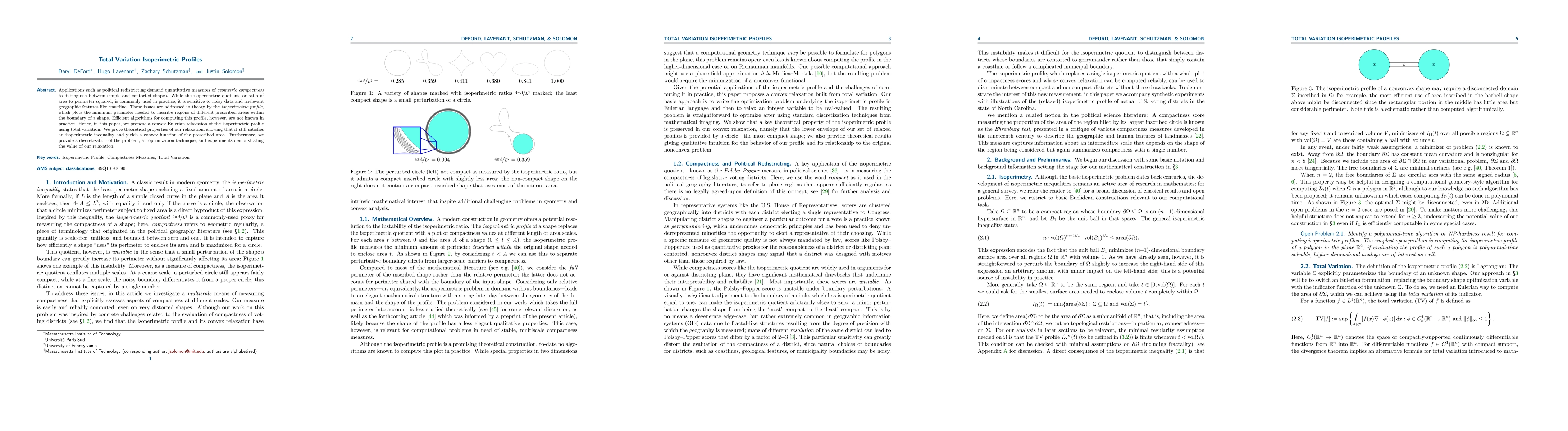 Applications such as political redistricting demand quantitative measures of geometric compactness to distinguish between simple and contorted shapes. While the isoperimetric quotient, or ratio of area to perimeter squared, is commonly used in practice, it is sensitive to noisy data and irrelevant geographic features like coastline. These issues are addressed in theory by the isoperimetric profile, which plots the minimum perimeter needed to inscribe regions of different prescribed areas within the boundary of a shape. Efficient algorithms for computing this profile, however, are not known in practice. Hence, in this paper, we propose a convex Eulerian relaxation of the isoperimetric profile using total variation. We prove theoretical properties of our relaxation, showing that it still satisfies an isoperimetric inequality and yields a convex function of the prescribed area. Furthermore, we provide a discretization of the problem, an optimization technique, and experiments demonstrating the value of our relaxation.