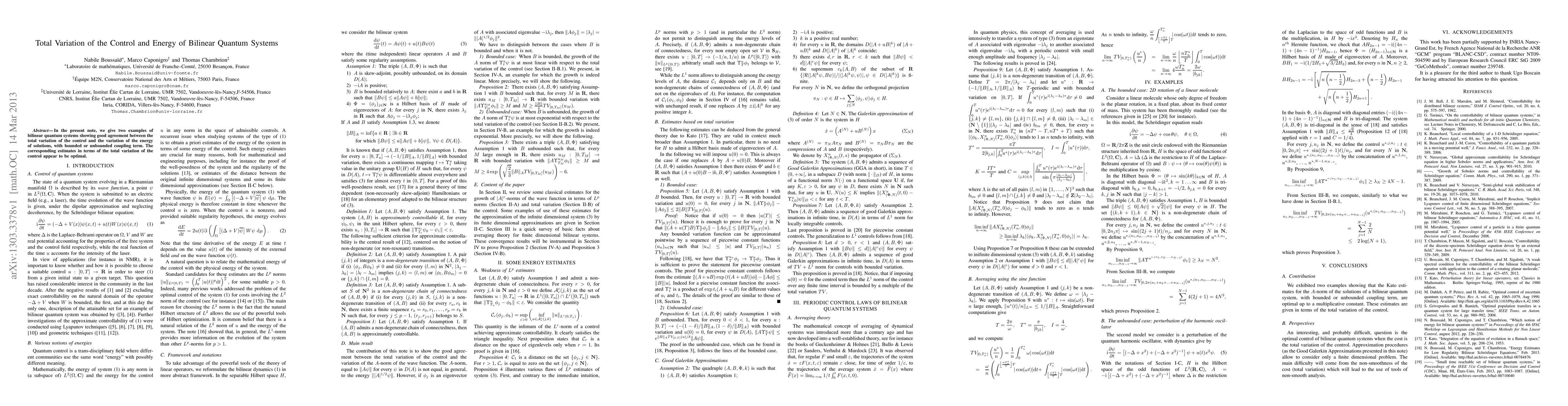 In the present note, we give two examples of bilinear quantum systems showing good agreement between the total variation of the control and the variation of the energy of solutions, with bounded or unbounded coupling term. The corresponding estimates in terms of the total variation of the control appear to be optimal.