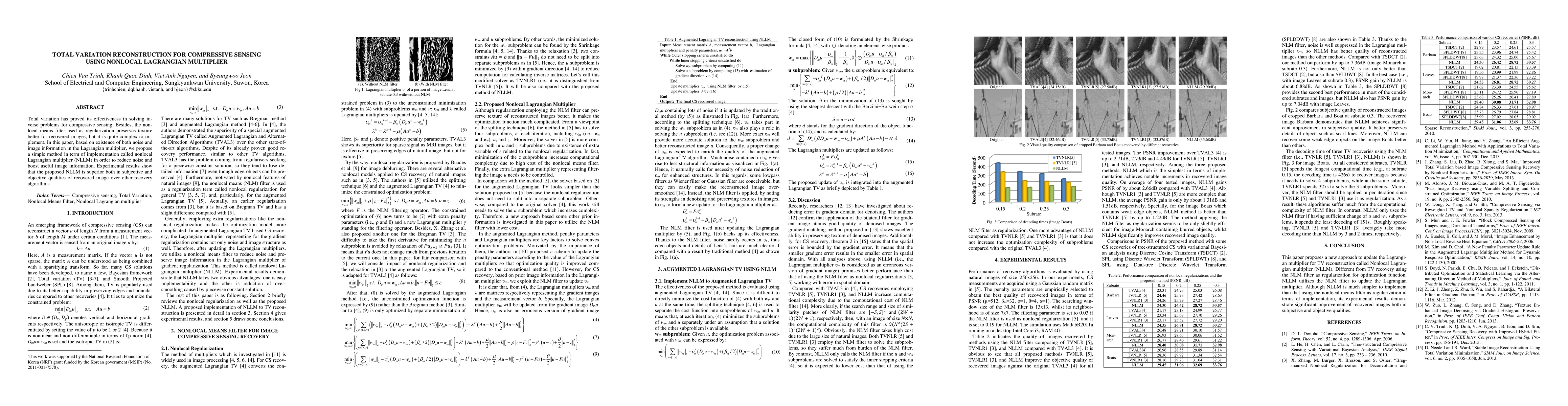Total variation has proved its effectiveness in solving inverse problems for compressive sensing. Besides, the nonlocal means filter used as regularization preserves texture better for recovered images, but it is quite complex to implement. In this paper, based on existence of both noise and image information in the Lagrangian multiplier, we propose a simple method in term of implementation called nonlocal Lagrangian multiplier (NLLM) in order to reduce noise and boost useful image information. Experimental results show that the proposed NLLM is superior both in subjective and objective qualities of recovered image over other recovery algorithms.