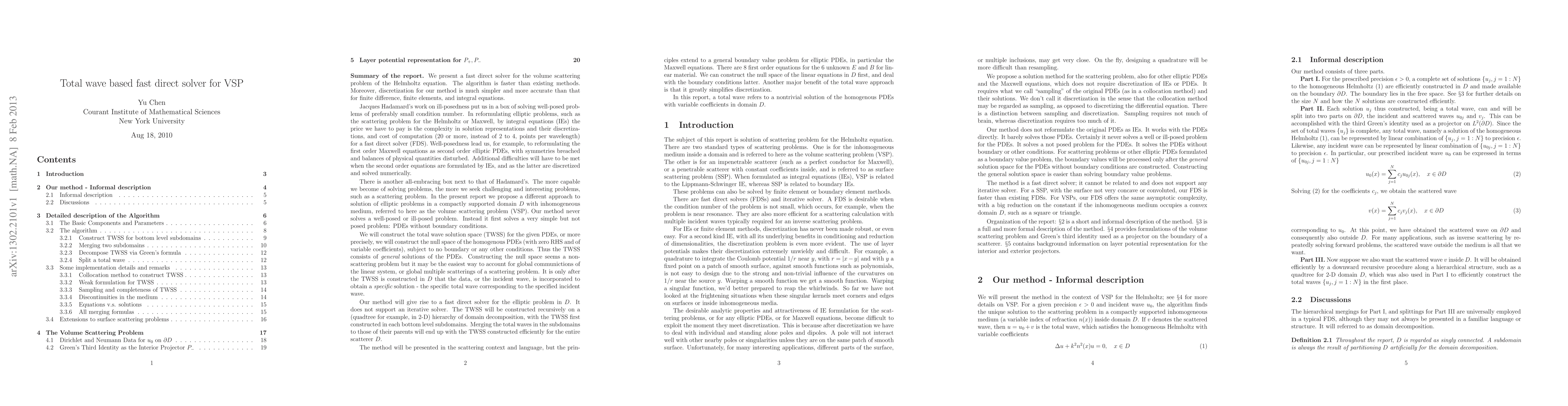 The research presents a fast direct solver for volume scattering problems of the Helmholtz equation, utilizing total waves and a quadtree-based approach for subdomain decomposition.