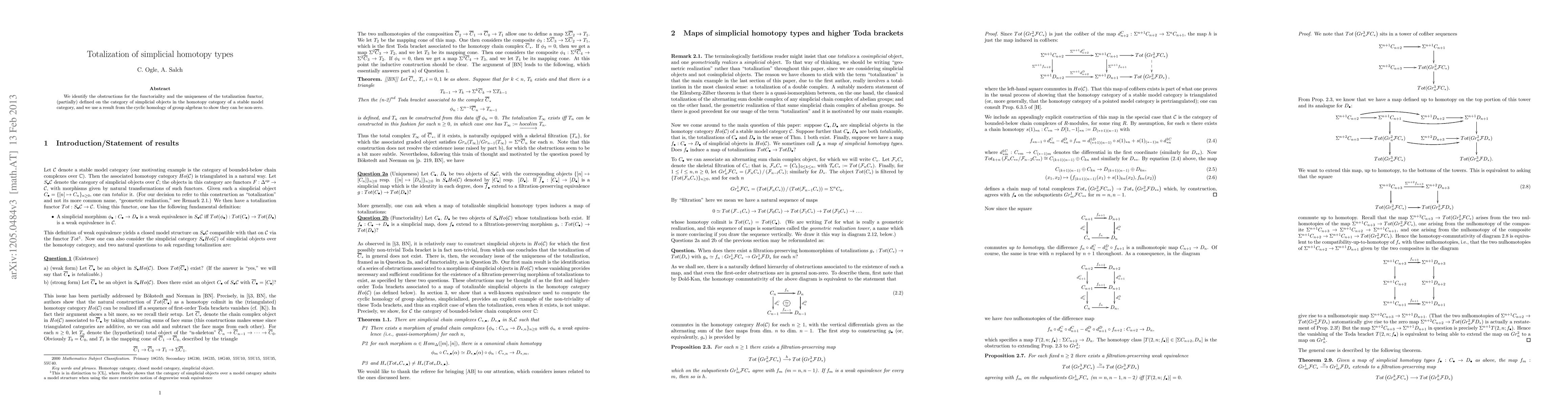 Summary: The paper identifies obstructions to the functoriality and uniqueness of the totalization functor for simplicial objects in stable model categories and demonstrates, using cyclic homology of group algebras, that these obstructions can indeed be non-zero.