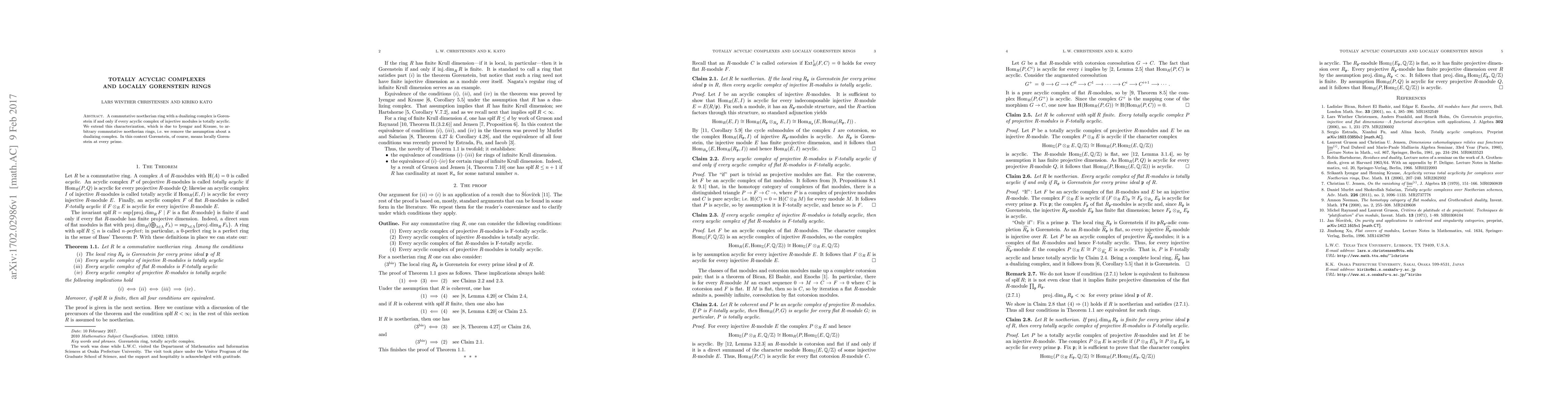 This paper extends the characterization of locally Gorenstein rings to all commutative noetherian rings, showing that such rings are equivalent to those where every acyclic complex of injective modules is totally acyclic, removing the requirement for a dualizing complex.