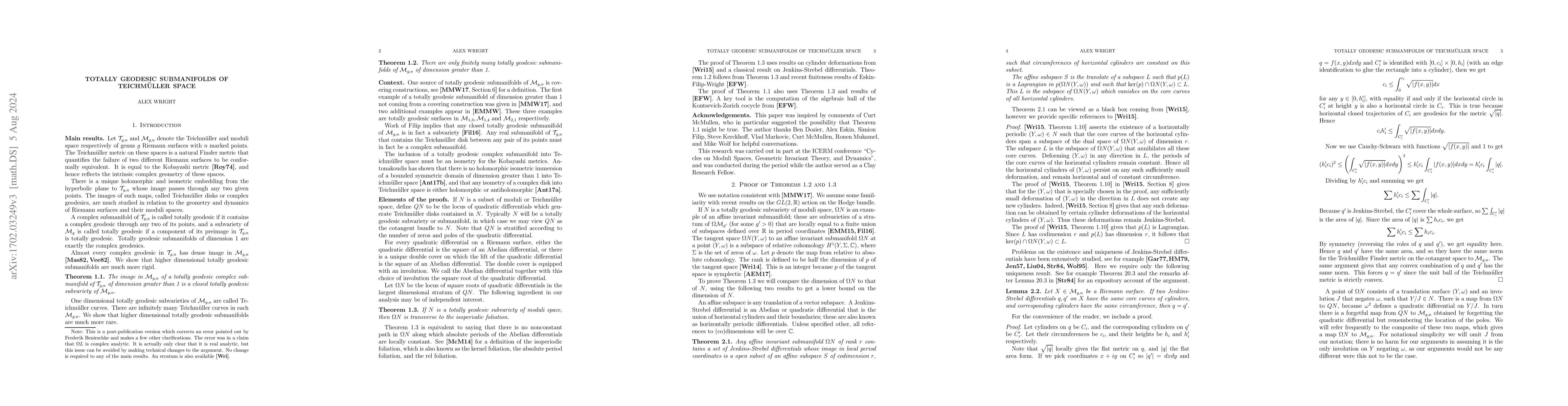 Summary: The research demonstrates that higher-dimensional totally geodesic submanifolds of Teichmüller space correspond to and are covered by totally geodesic subvarieties, with only a finite number of such subvarieties existing in each moduli space.
