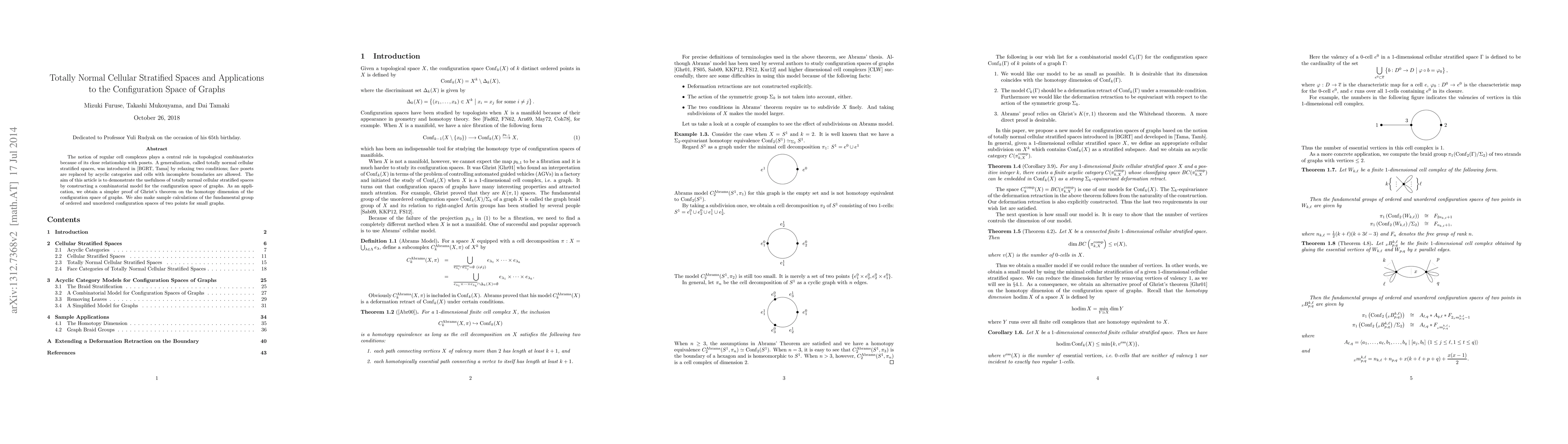 This paper generalizes regular cell complexes into totally normal cellular stratified spaces, which allow for acyclic categories and incomplete boundary cells. The authors apply this framework to construct a combinatorial model for the configuration space of graphs, providing a simpler proof of Ghrist's theorem on its homotopy dimension and offering calculations for the fundamental group of small graph configurations.