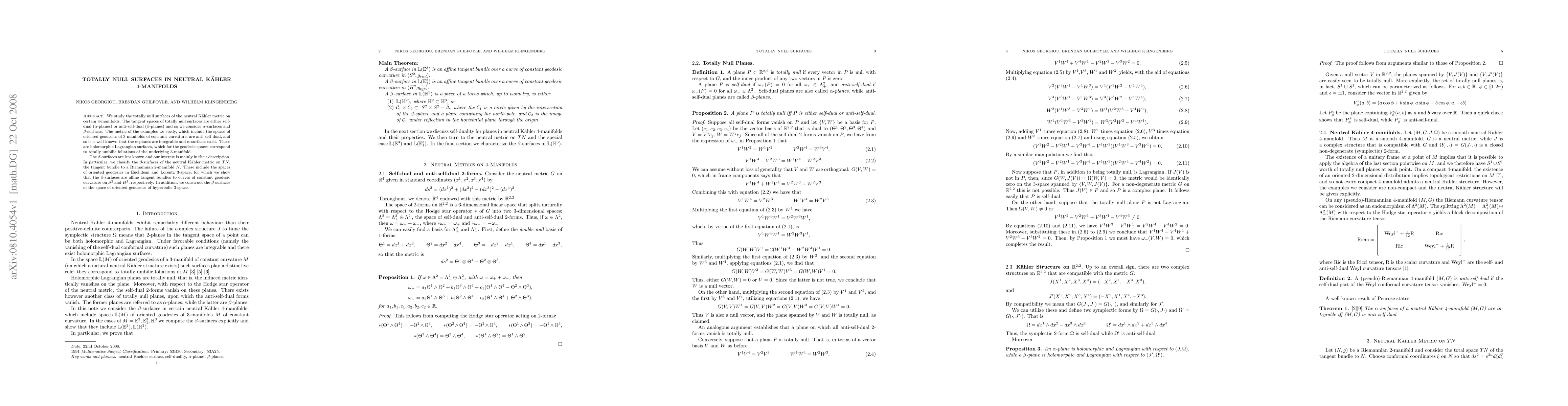 We study the totally null surfaces of the neutral Kaehler metric on certain 4-manifolds. The tangent spaces of totally null surfaces are either self-dual ($\alpha$-planes) or anti-self-dual ($\beta$-planes) and so we consider $\alpha$-surfaces and $\beta$-surfaces. The metric of the examples we study, which include the spaces of oriented geodesics of 3-manifolds of constant curvature, are anti-self-dual, and so it is well-known that the $\alpha$-planes are integrable and $\alpha$-surfaces exist. These are holomorphic Lagrangian surfaces, which for the geodesic spaces correspond to totally umbilic foliations of the underlying 3-manifold. The $\beta$-surfaces are less known and our interest is mainly in their description. In particular, we classify the $\beta$-surfaces of the neutral Kaehler metric on $TN$, the tangent bundle to a Riemannian 2-manifold $N$. These include the spaces of oriented geodesics in Euclidean and Lorentz 3-space, for which we show that the $\beta$-surfaces are affine tangent bundles to curves of constant geodesic curvature on $S^2$ and $H^2$, respectively. In addition, we construct the $\beta$-surfaces of the space of oriented geodesics of hyperbolic 3-space.