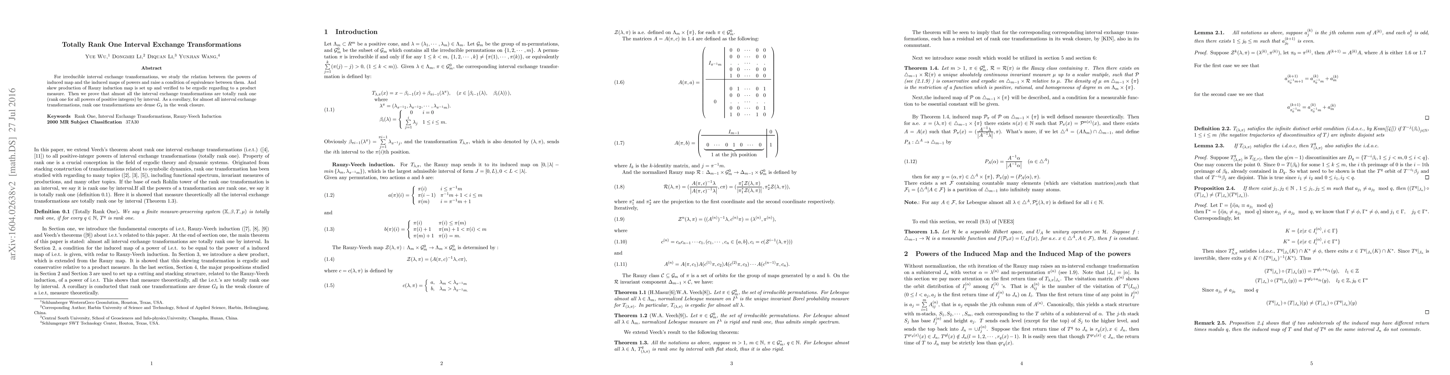 This paper explores irreducible interval exchange transformations, establishing a condition for equivalence between the powers of the induced map and the induced maps of powers. It proves that almost all such transformations are totally rank one and shows that rank one transformations densely populate the weak closure in a $G_{\delta}$ set.