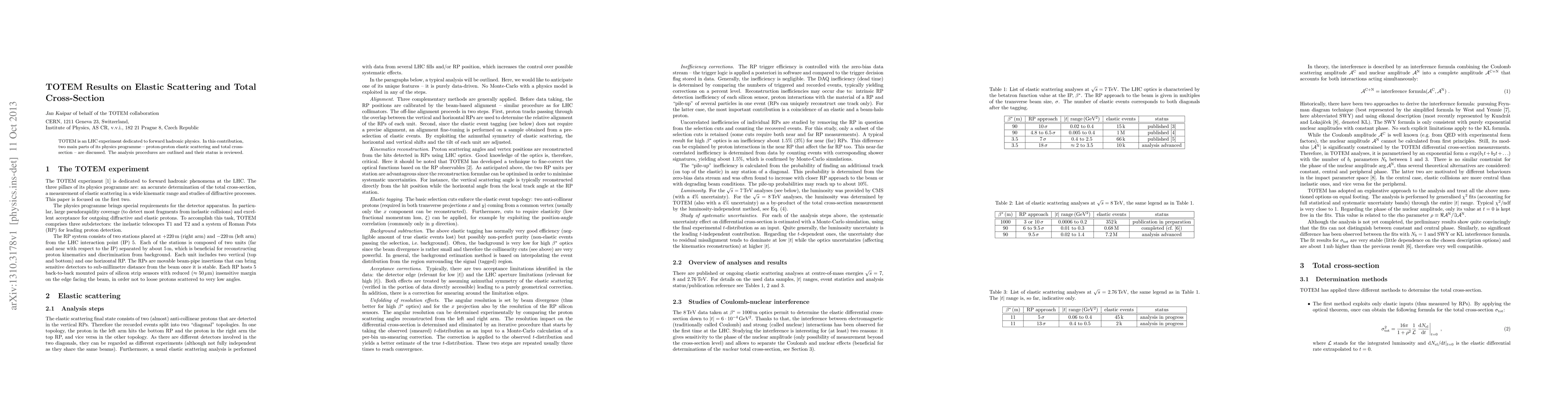 Summary: TOTEM, an LHC experiment focused on forward hadronic physics, reports on proton-proton elastic scattering and total cross-section measurements. The paper outlines the analysis procedures and reviews their current status.