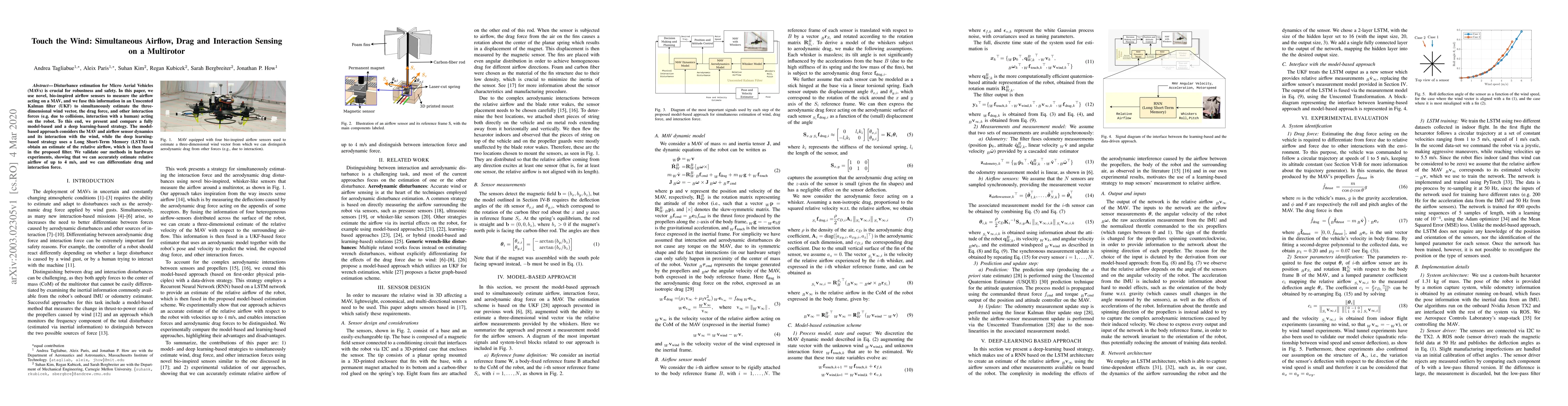Disturbance estimation for Micro Aerial Vehicles (MAVs) is crucial for robustness and safety. In this paper, we use novel, bio-inspired airflow sensors to measure the airflow acting on a MAV, and we fuse this information in an Unscented Kalman Filter (UKF) to simultaneously estimate the three-dimensional wind vector, the drag force, and other interaction forces (e.g. due to collisions, interaction with a human) acting on the robot. To this end, we present and compare a fully model-based and a deep learning-based strategy. The model-based approach considers the MAV and airflow sensor dynamics and its interaction with the wind, while the deep learning-based strategy uses a Long Short-Term Memory (LSTM) neural network to obtain an estimate of the relative airflow, which is then fused in the proposed filter. We validate our methods in hardware experiments, showing that we can accurately estimate relative airflow of up to 4 m/s, and we can differentiate drag and interaction force.