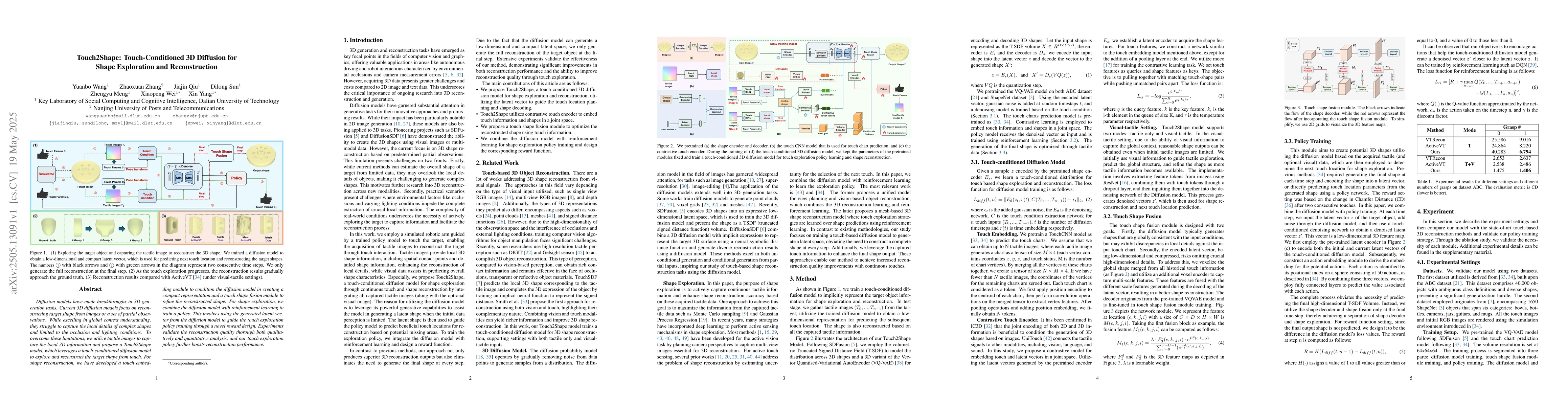 This research paper introduces Touch2Shape, a new method for 3D shape reconstruction that uses tactile images to capture local details and combines diffusion models with reinforcement learning for better results. The study shows improved reconstruction quality through touch exploration and validation.